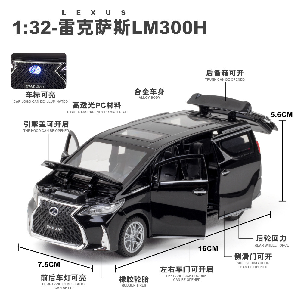 车致合金车模1:32雷克LM300H商务车带声光回力玩具车音乐模型摆件