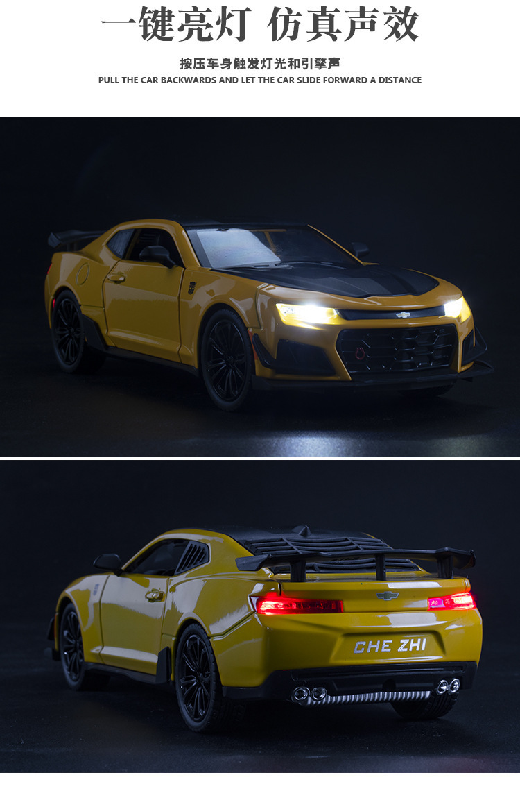 (散装)车致合金车模1:24大黄蜂跑车带声光回力玩具车音乐模型摆件