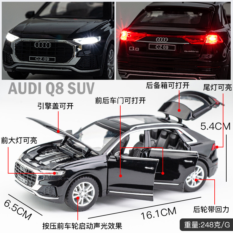 车致合金车模奥迪Q8回力越野车声光儿童男孩玩具汽车模型摆件收藏