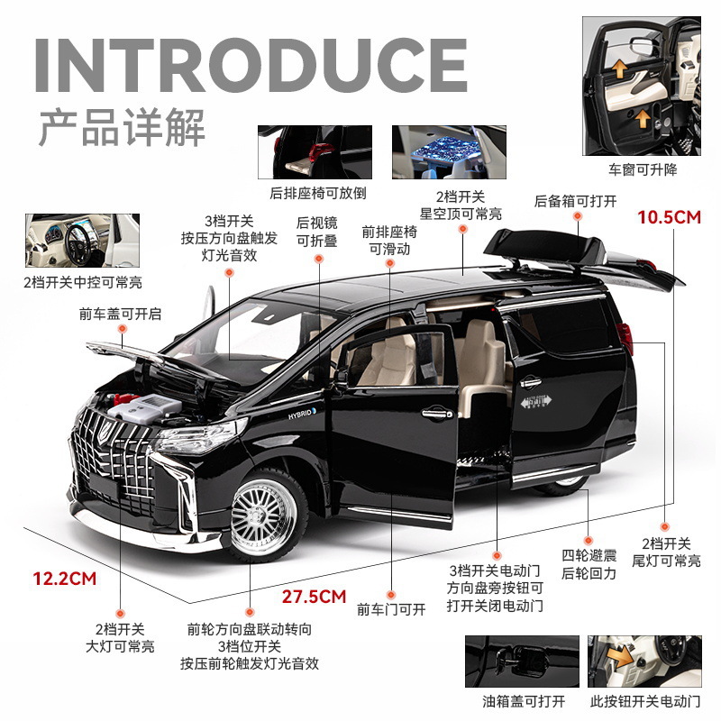 车致合金车模1:18丰田埃尔法双电动门带声光回力玩具汽车音效模型