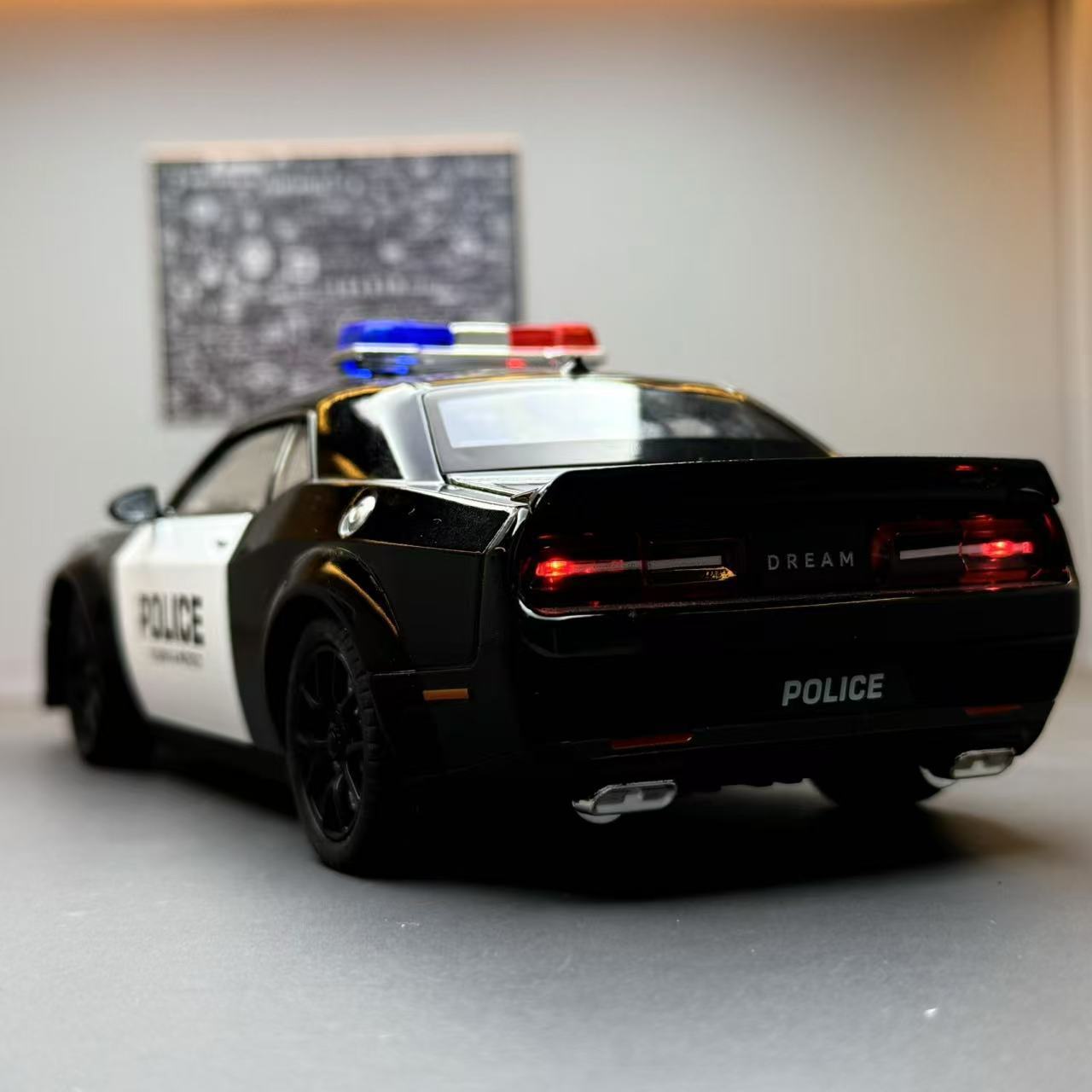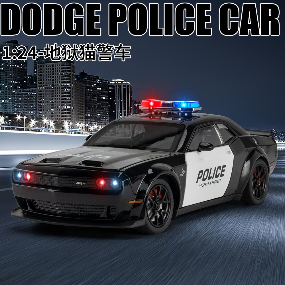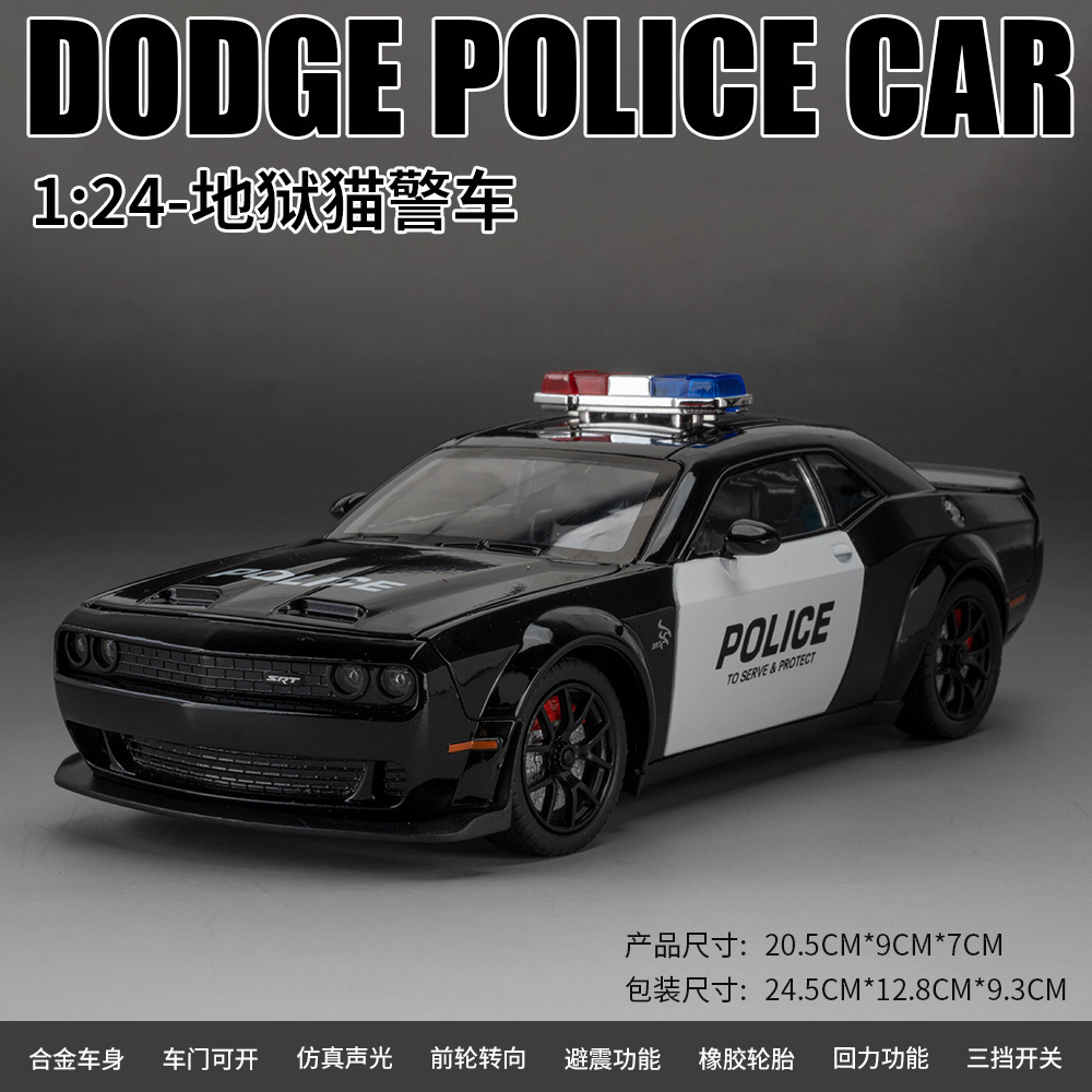 车致合金车模1:24地狱猫警车声光回力儿童玩具车音效模型摆件
