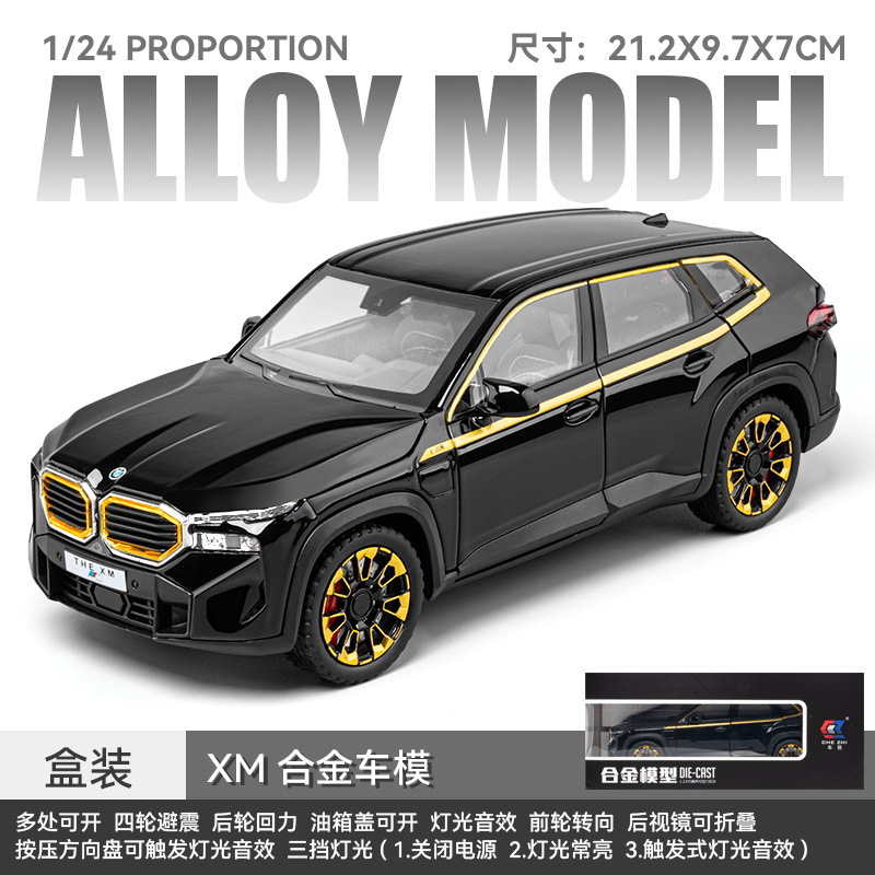 车致合金车模1:24宝玛XM越野车带声光回力玩具车音乐模型摆件