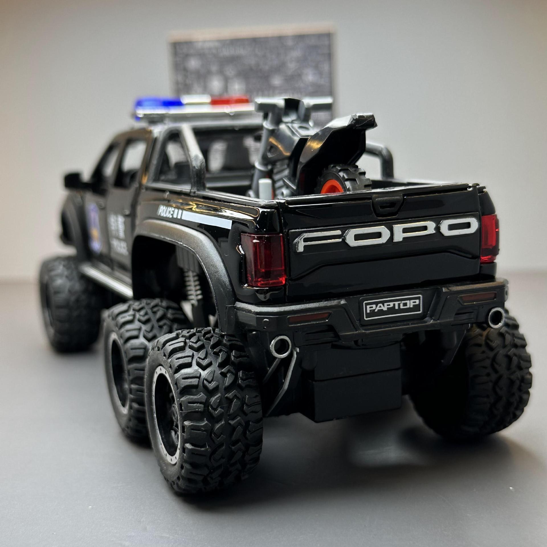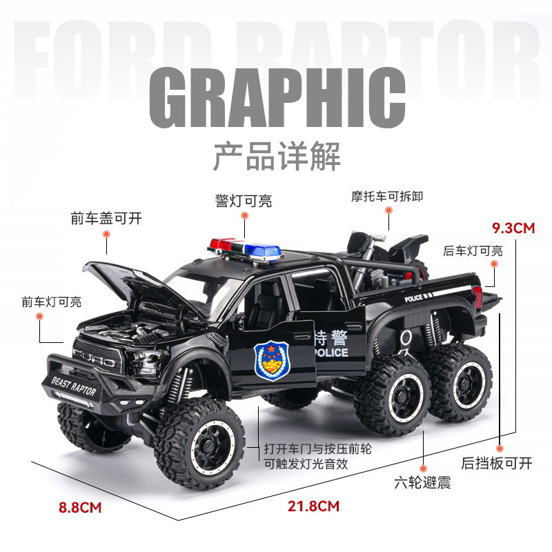 车致合金车模1:28福特猛禽F150警车回力带声光玩具越野车音乐模型