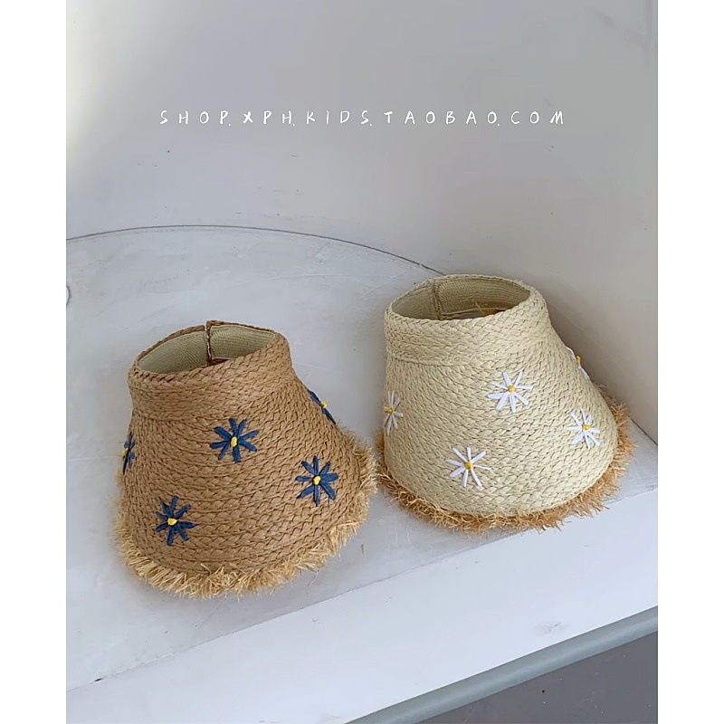 ins儿童草帽夏季宝宝洋气拉菲草空顶帽遮阳防晒女大童海边沙滩帽