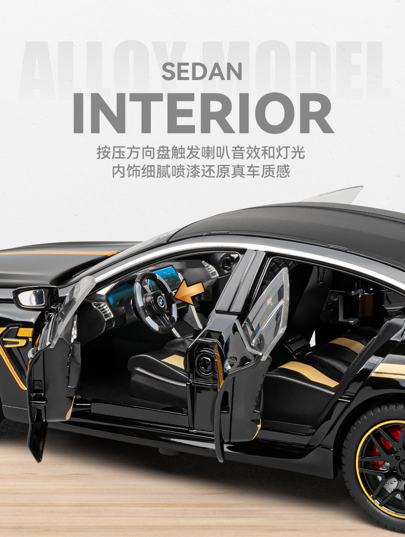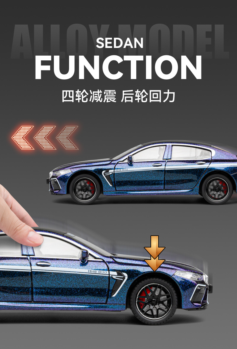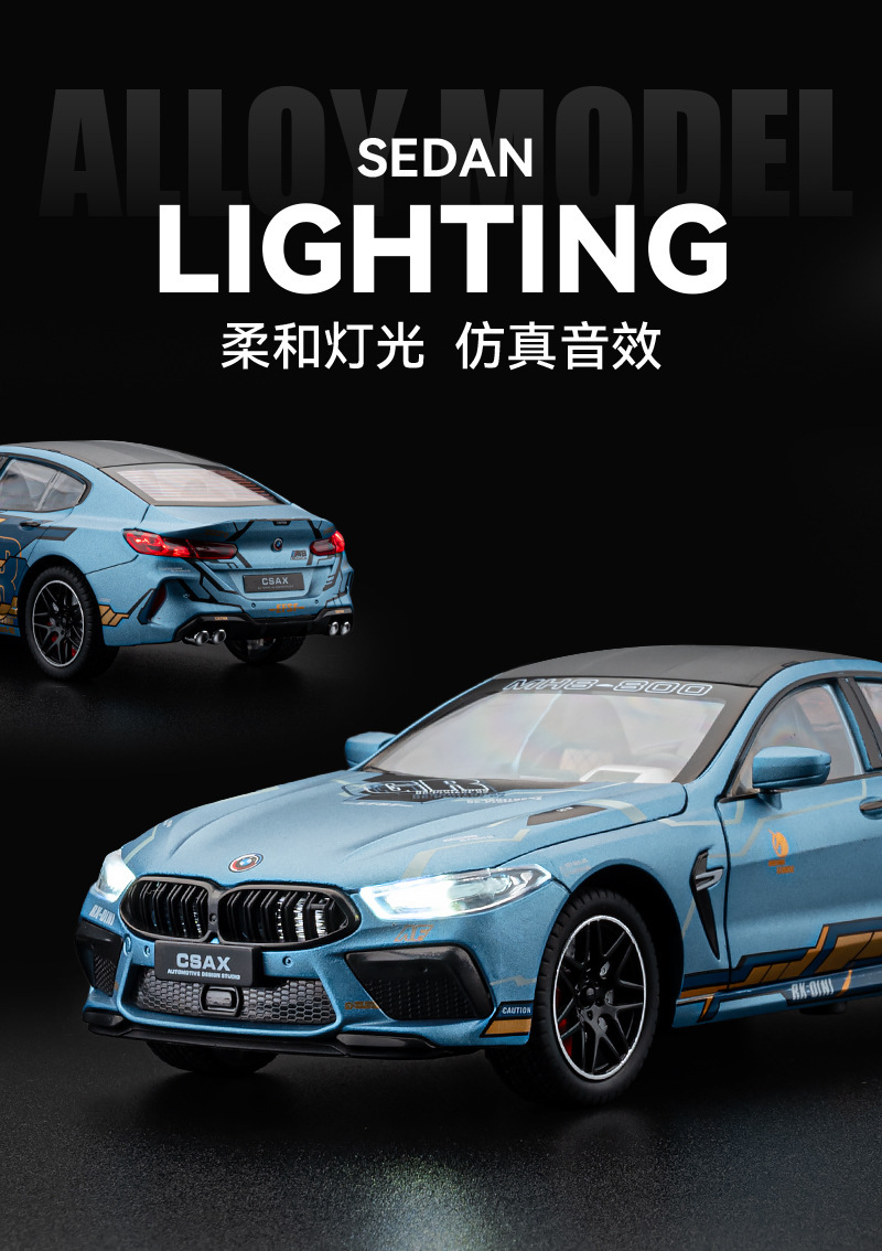 车致合金车模1:24保马M8跑车声光回力玩具车音效模型摆件