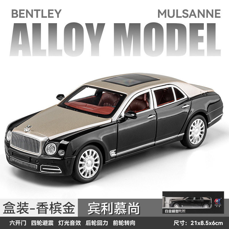 车致合金车模1:24宾俐慕尚发声灯光回力玩具汽车音乐模型摆件藏品