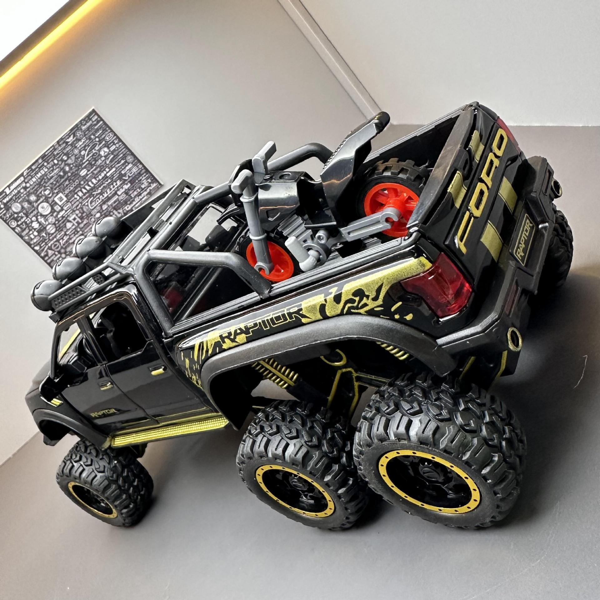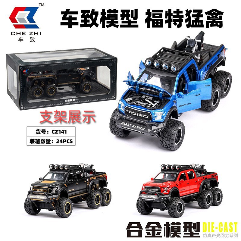 车致合金1:28猛禽越野皮卡F150车模回力带声光玩具车音乐模型摆件