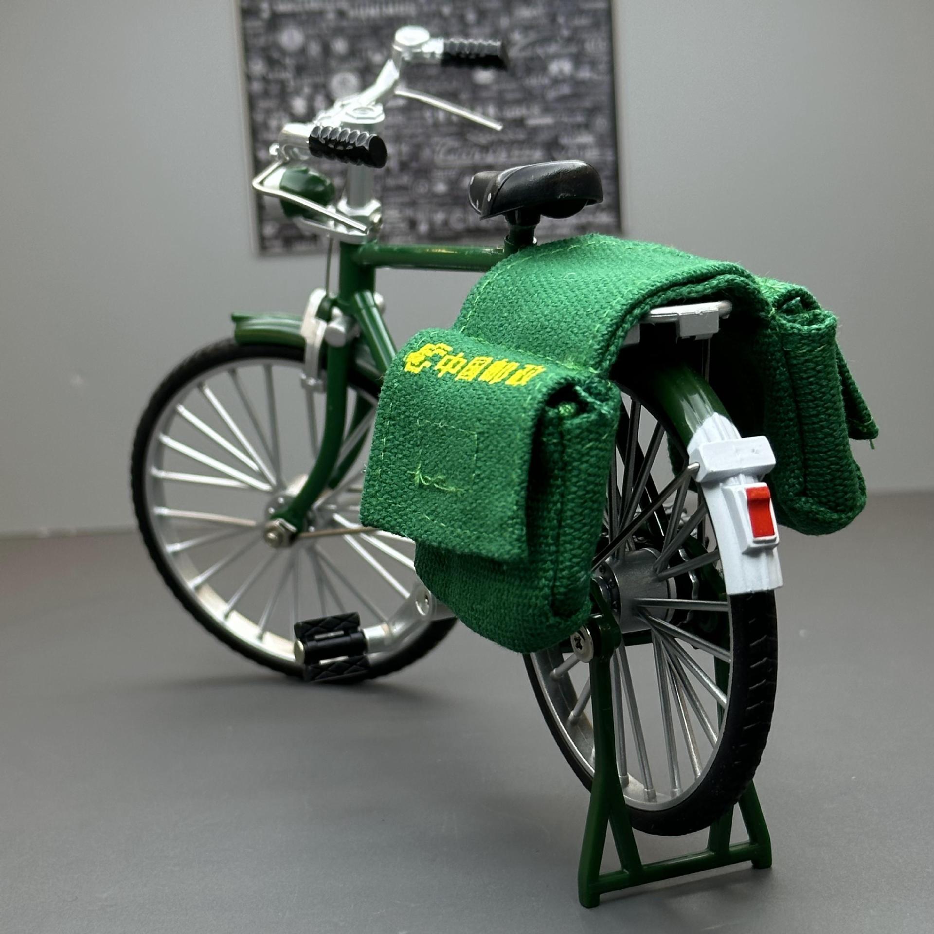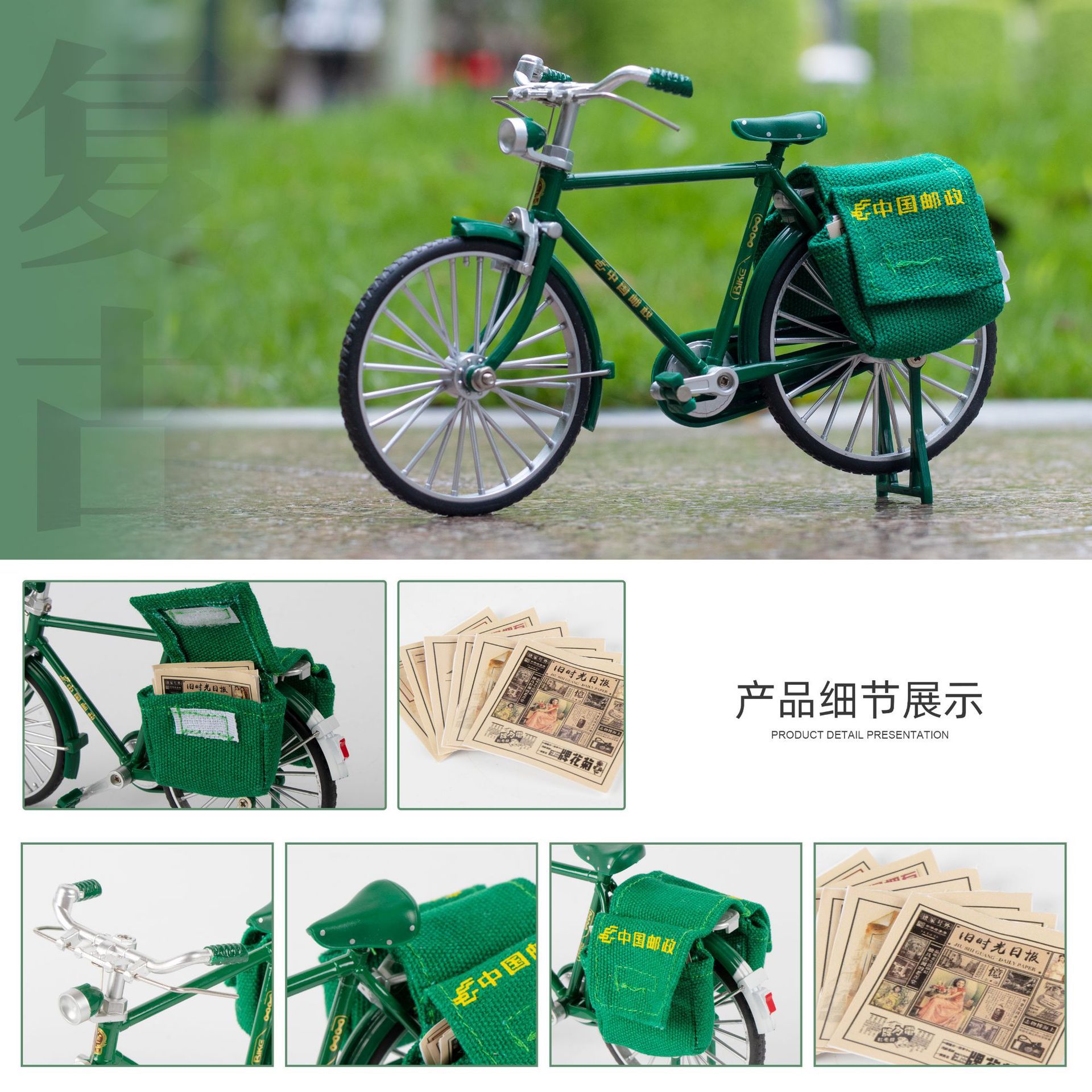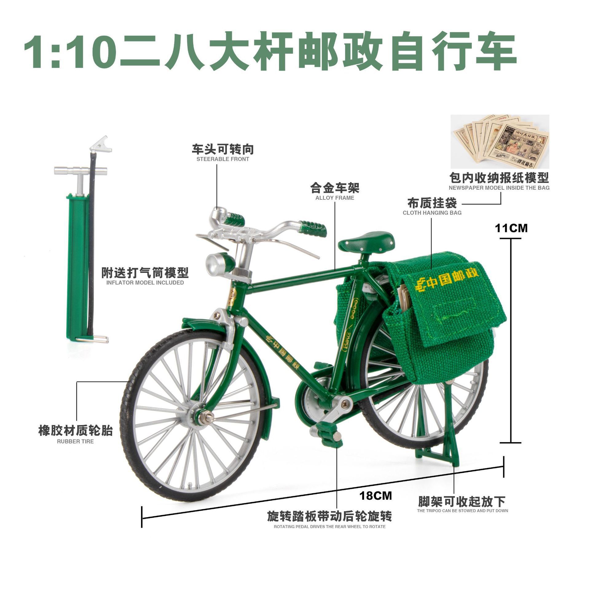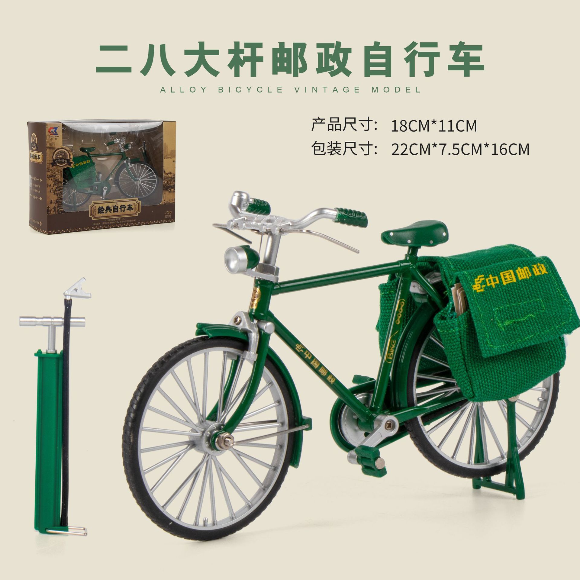 车致合金车模1:10二八大杆邮政版儿童玩具自行车无带声光模型摆件