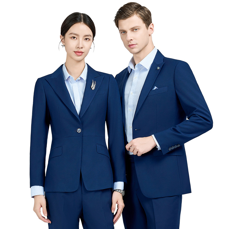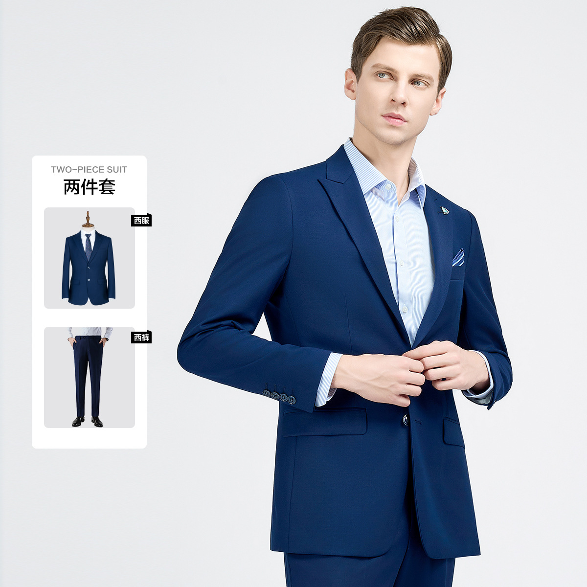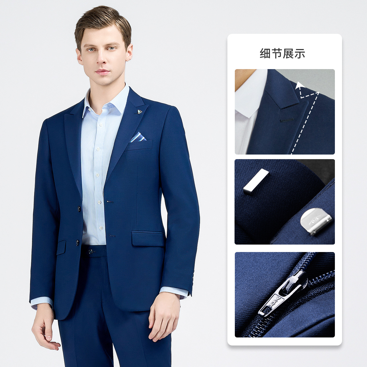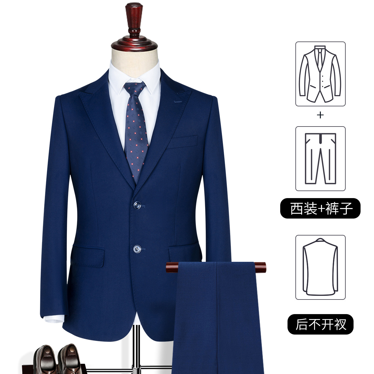休闲西装男新郎西服套装男士商务职业装婚礼服宝蓝色外套男女同款