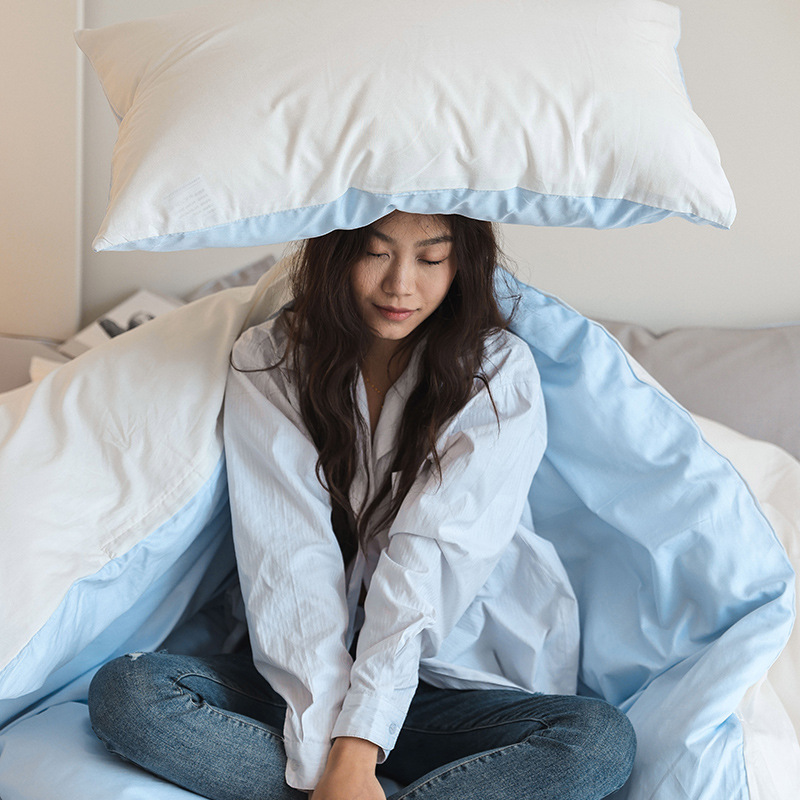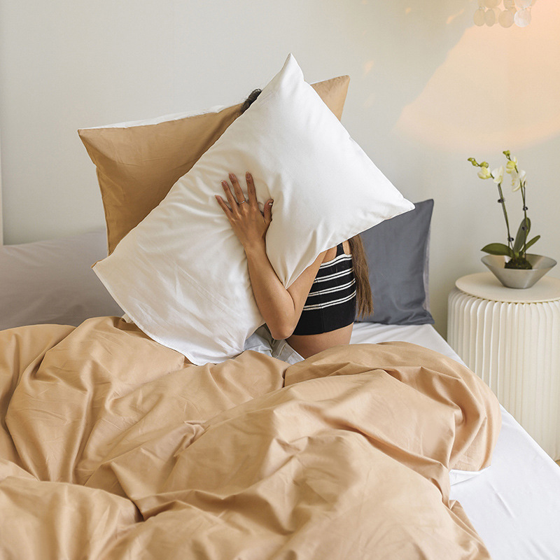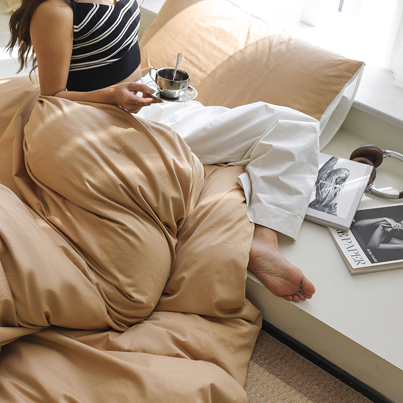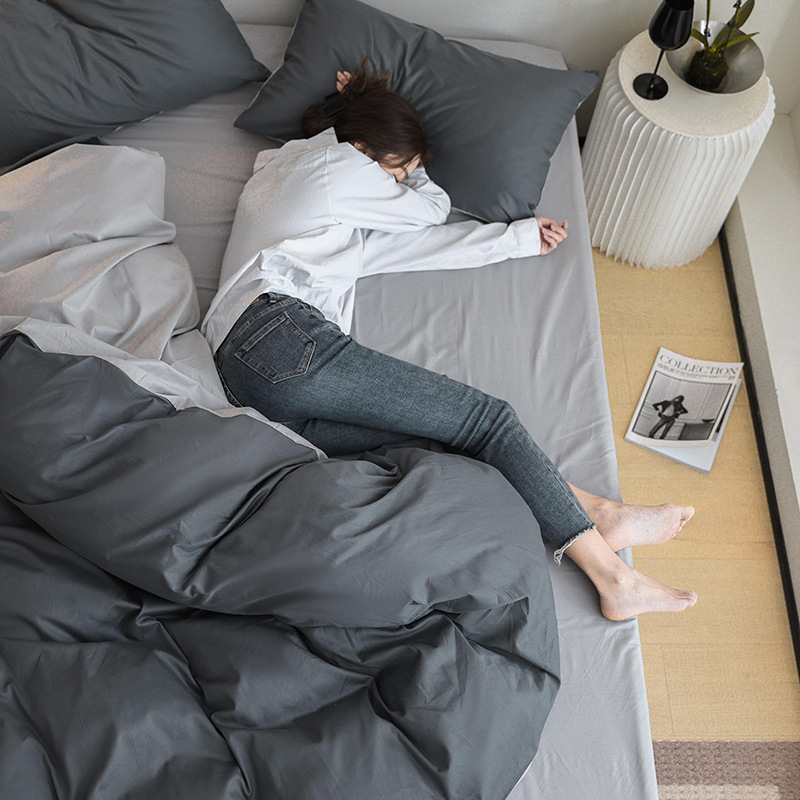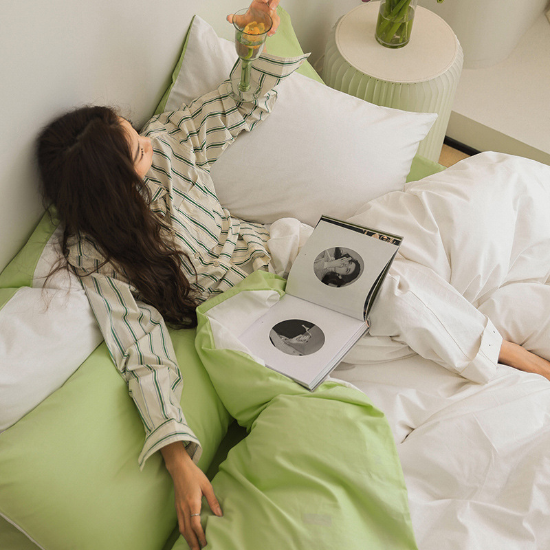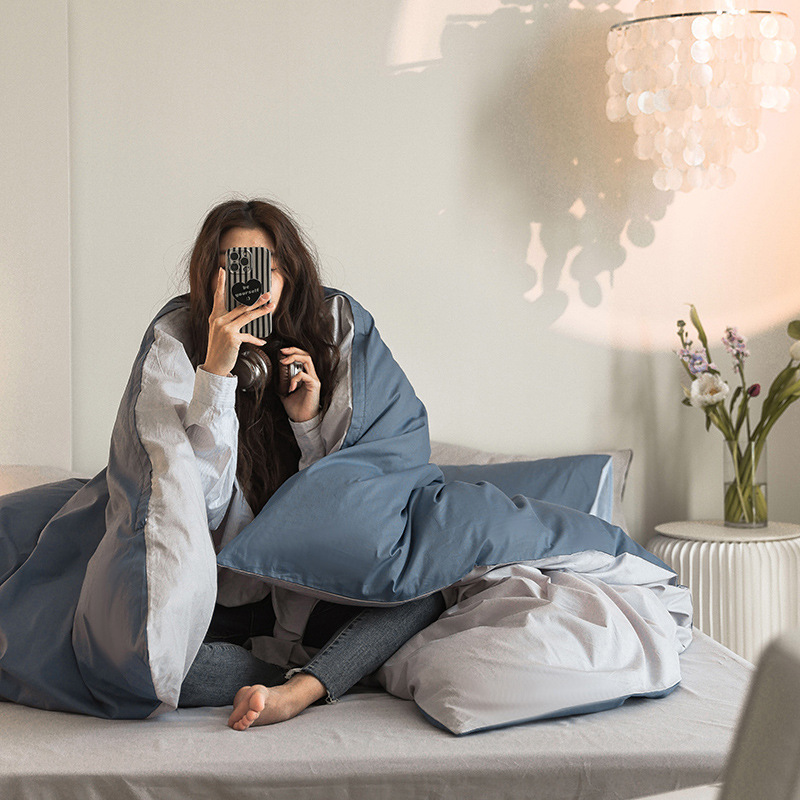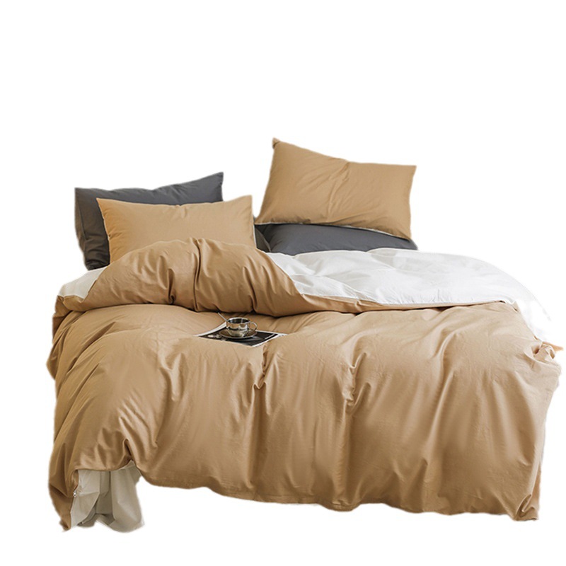 纯棉40支四件套全棉无印风拼色简约撞色民宿学生宿舍纯色三件套