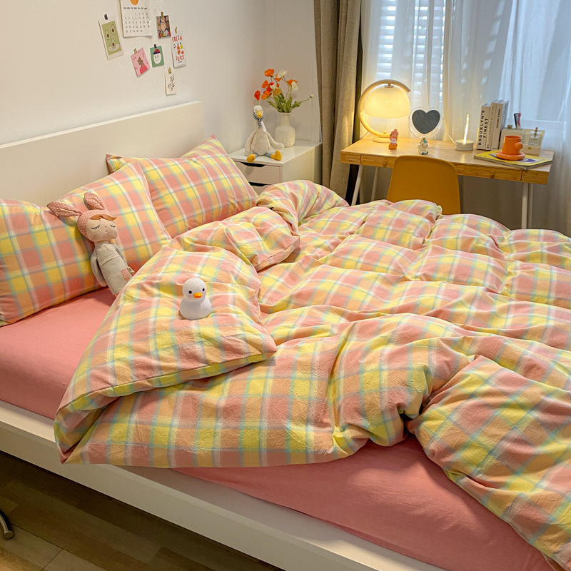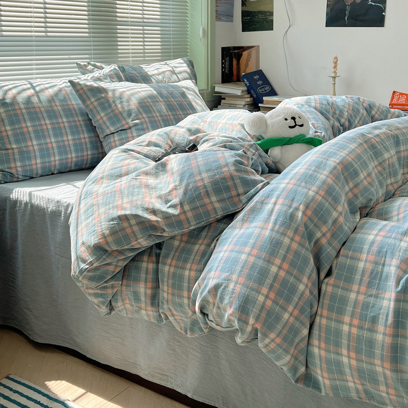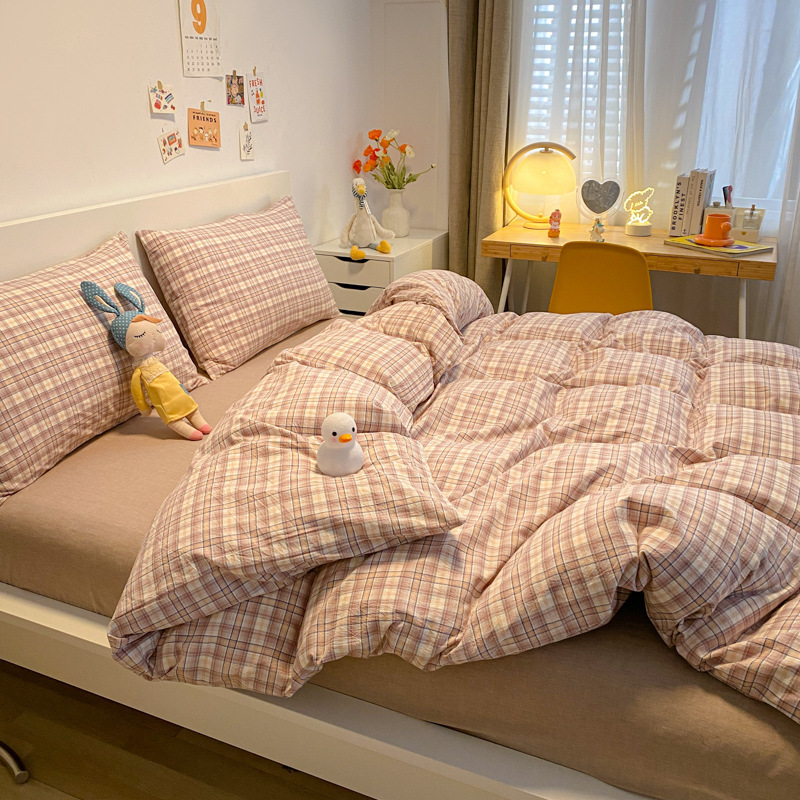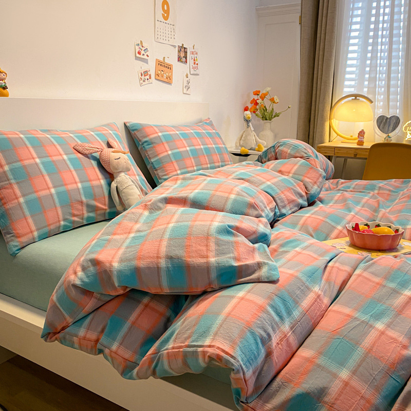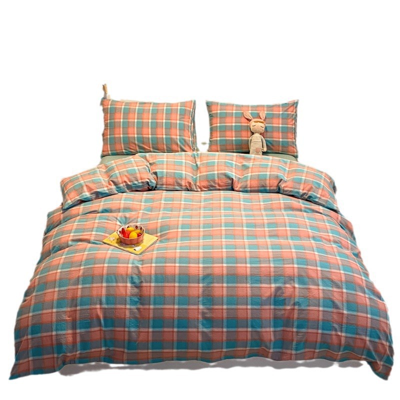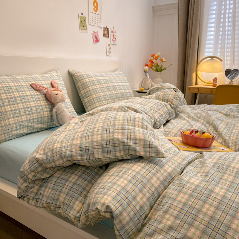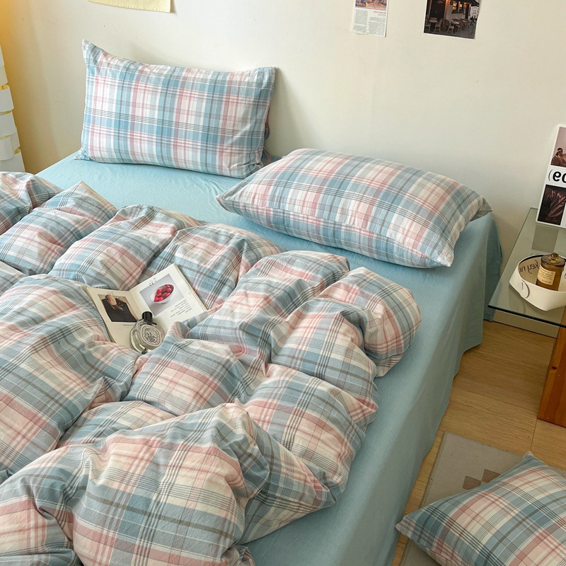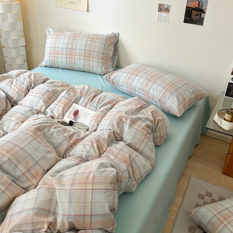 A类棉四件套无印风全棉色织水洗纯棉床单被套学生宿舍床笠三件套