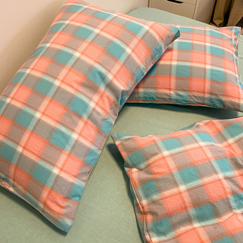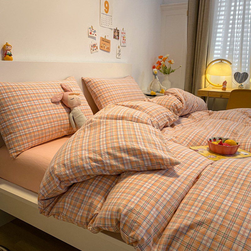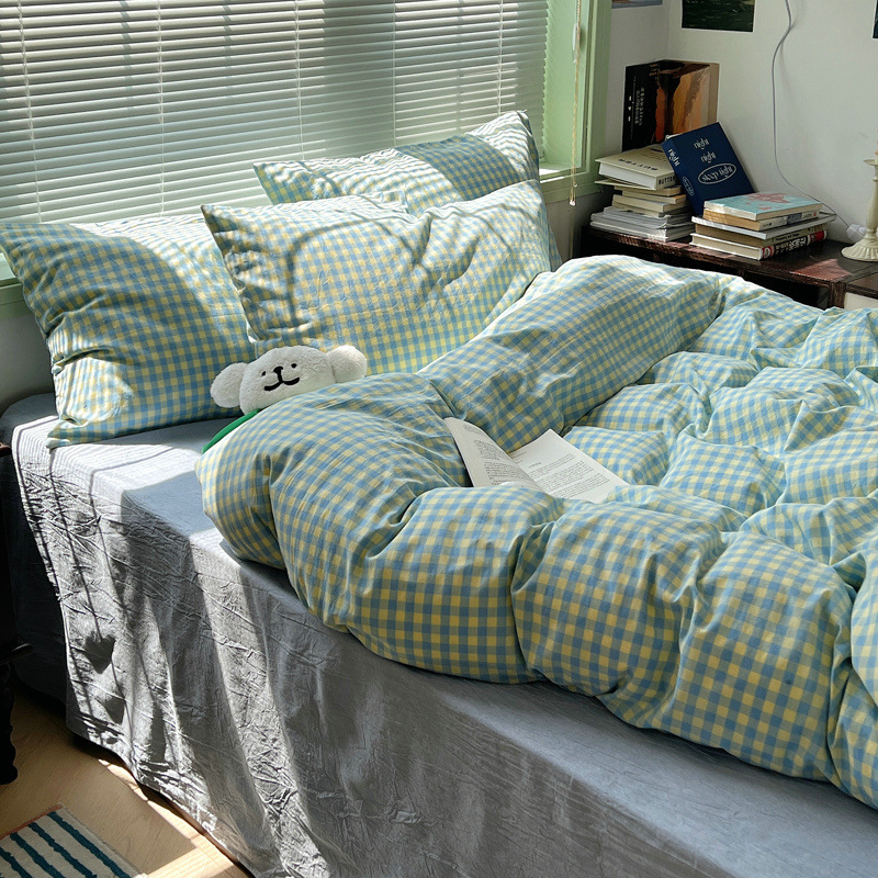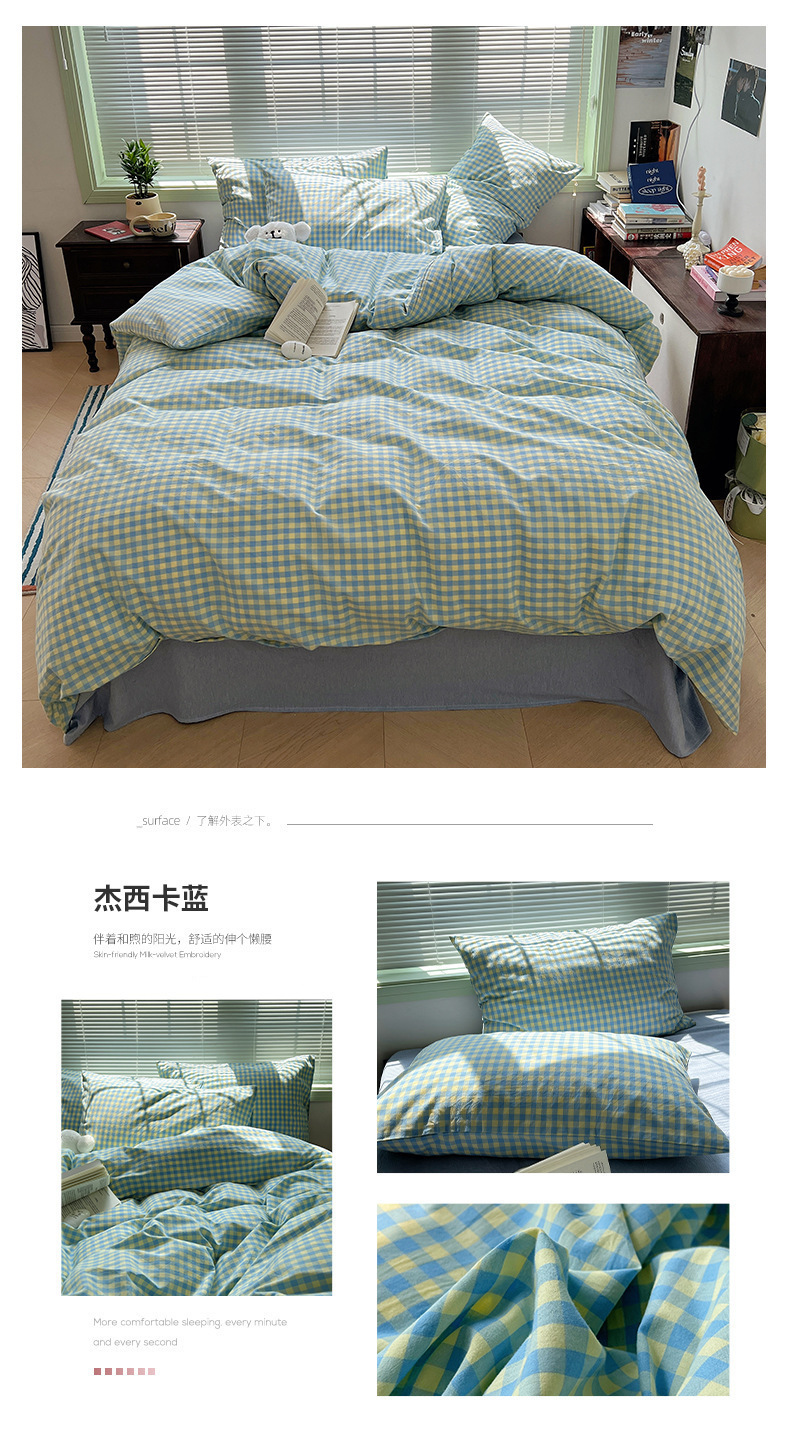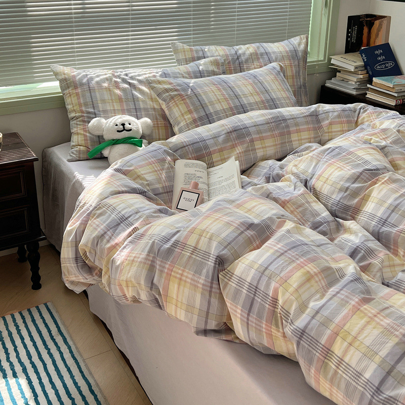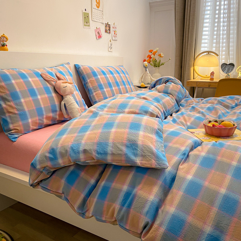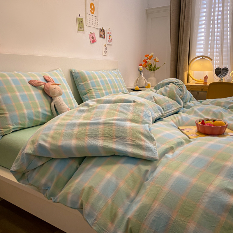 A类棉四件套无印风全棉色织水洗纯棉床单被套学生宿舍床笠三件套