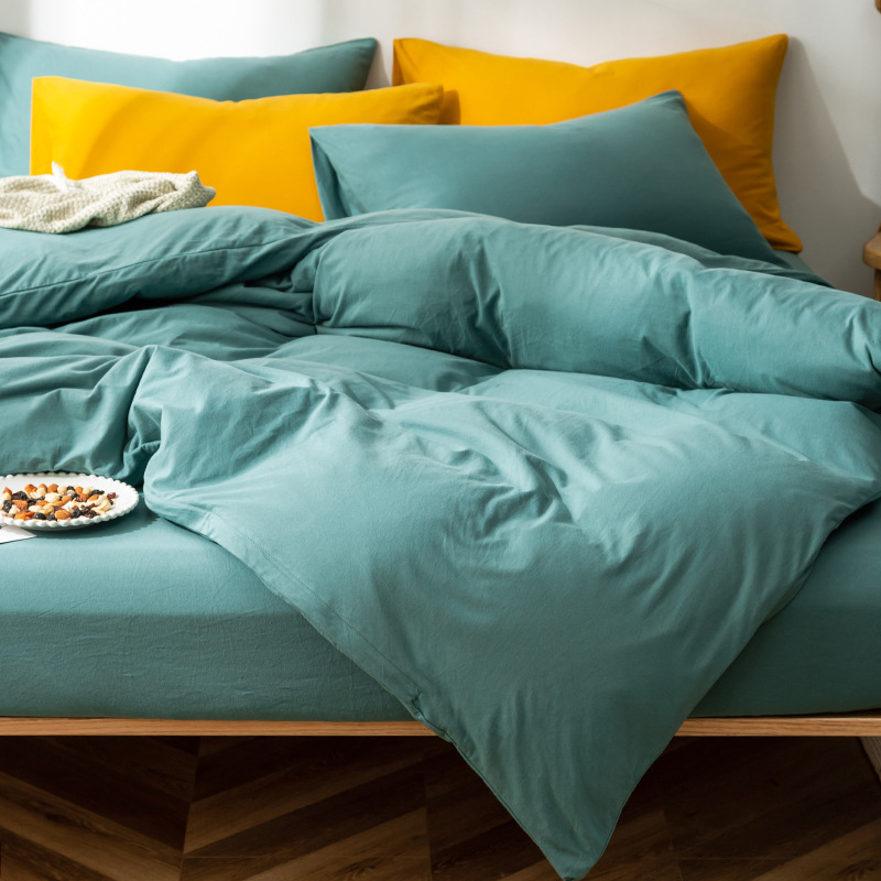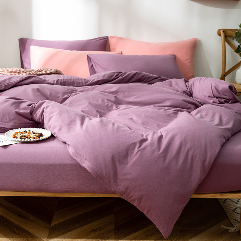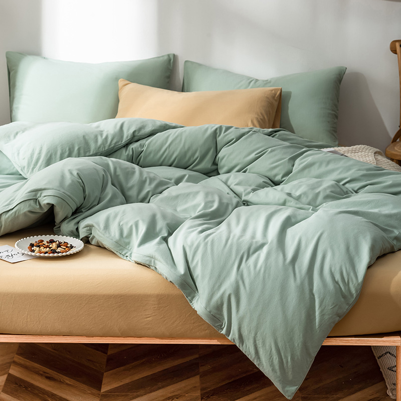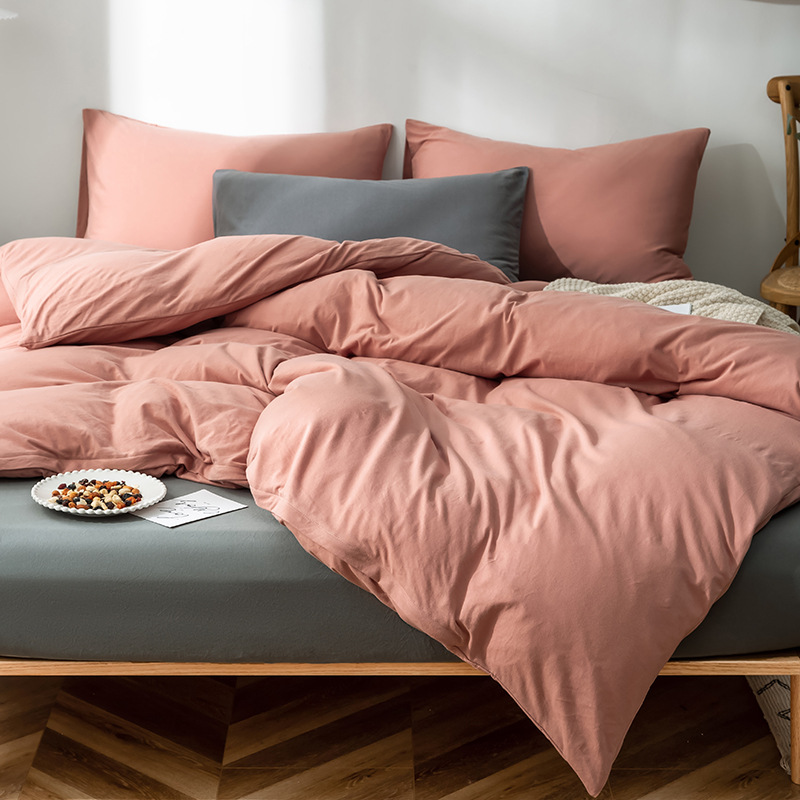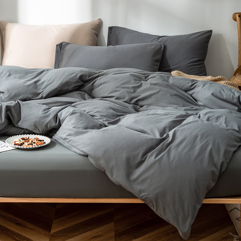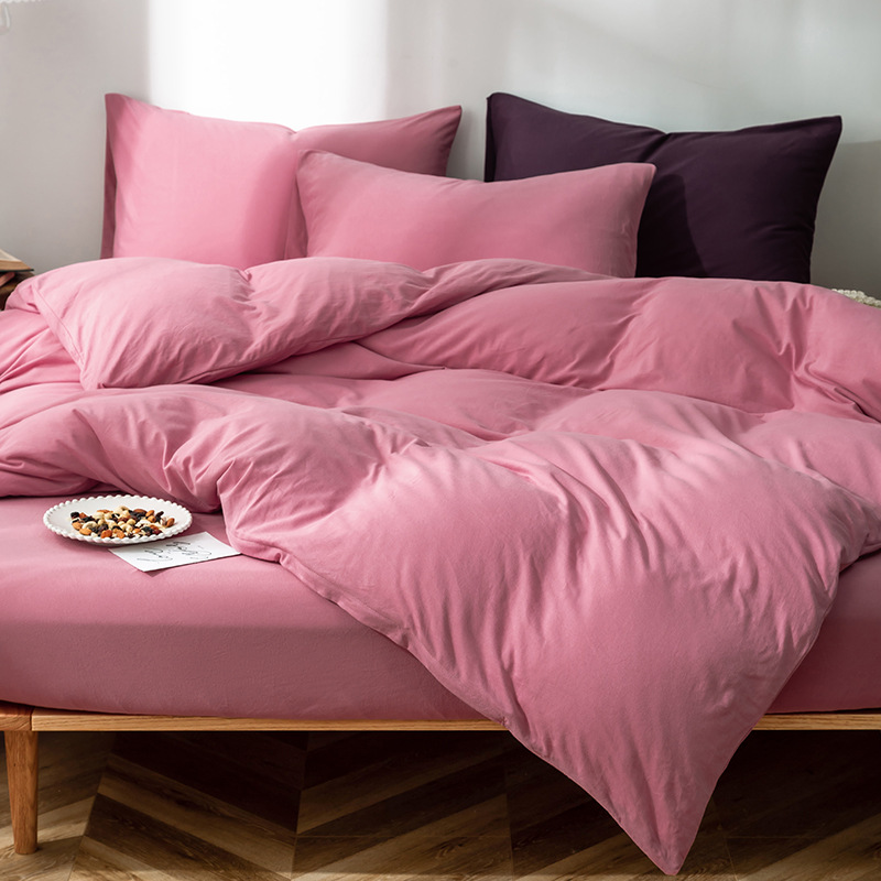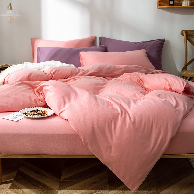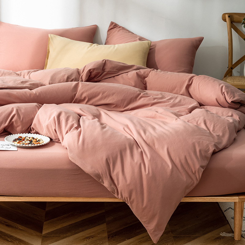 纯棉无印天竺棉四件套全棉纯色针织棉良品床单床笠三件套床上用品