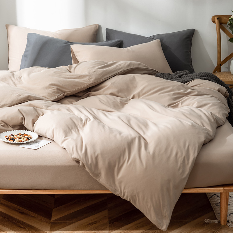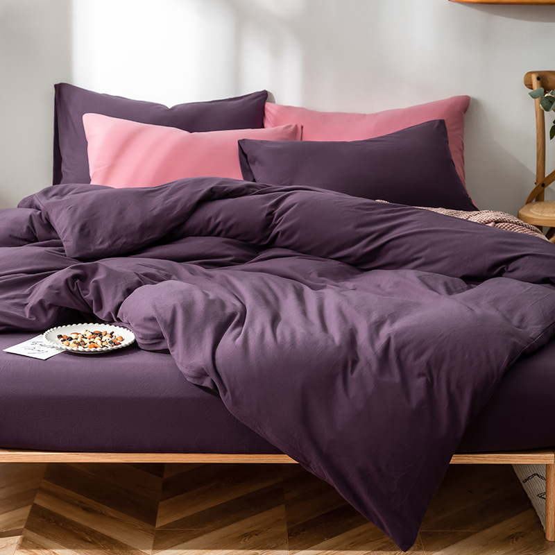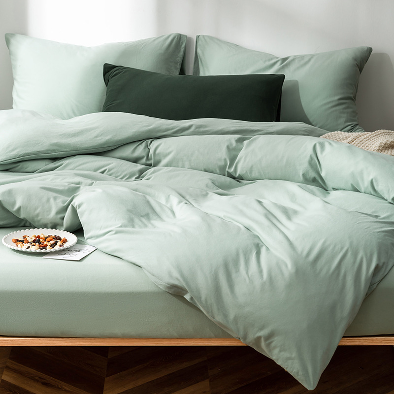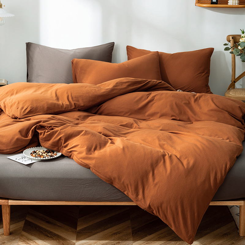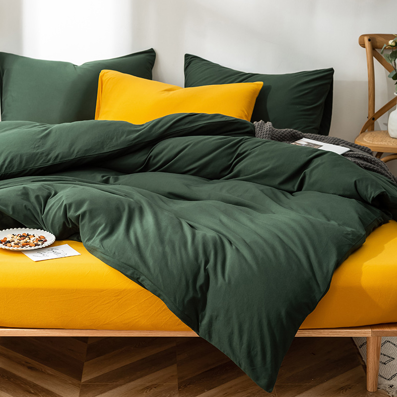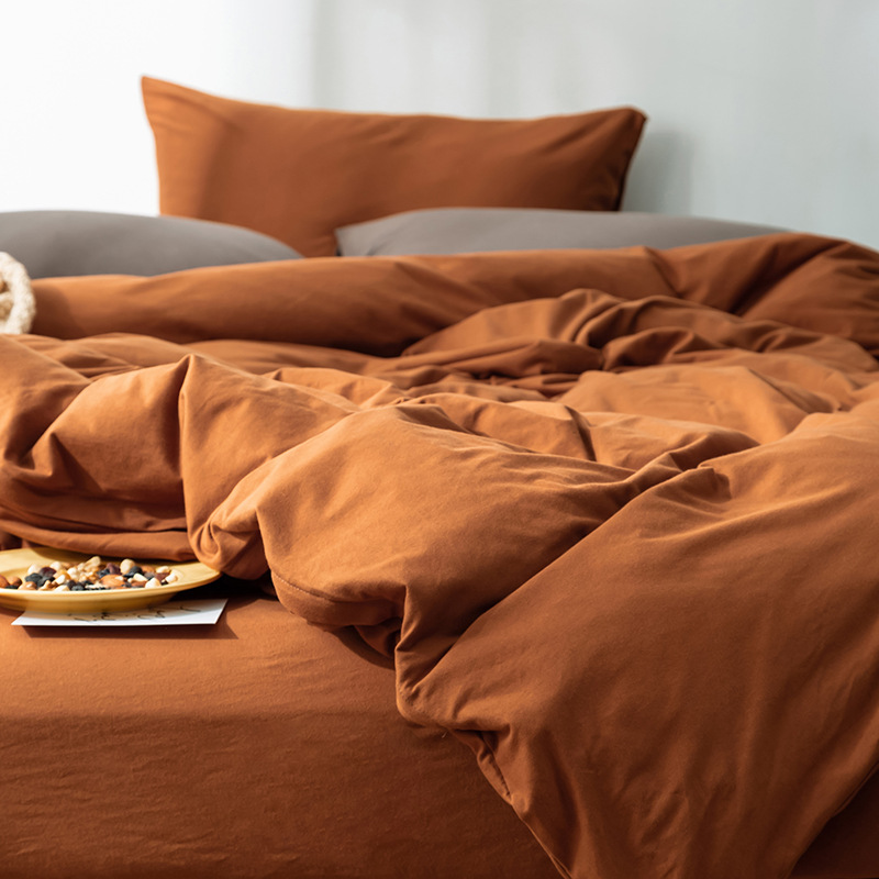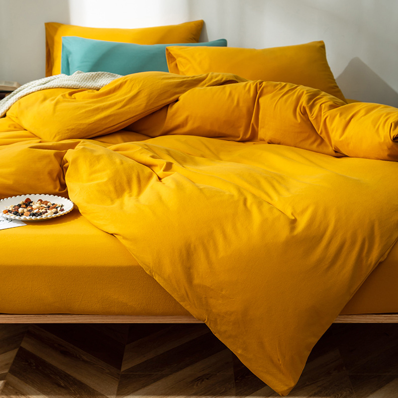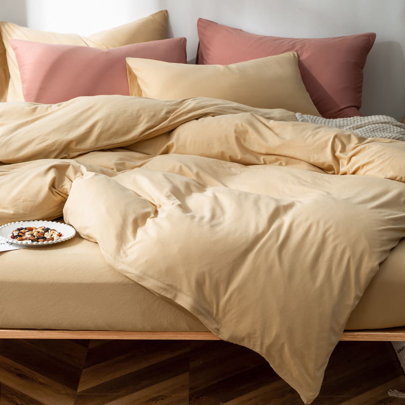 纯棉无印天竺棉四件套全棉纯色针织棉良品床单床笠三件套床上用品