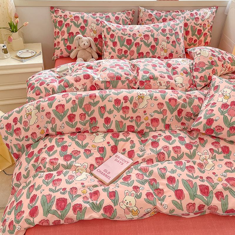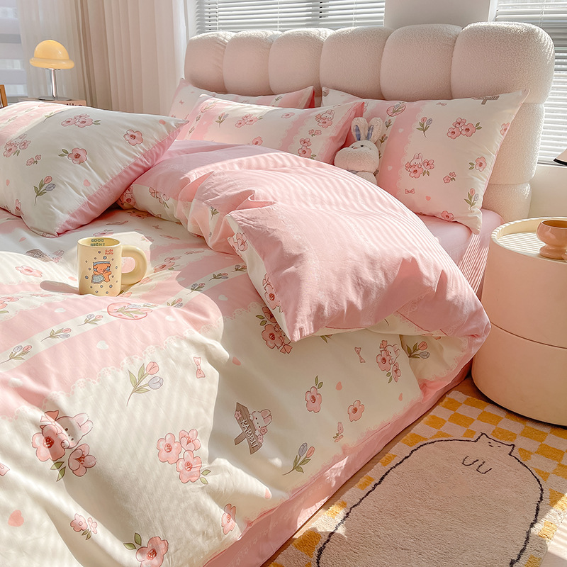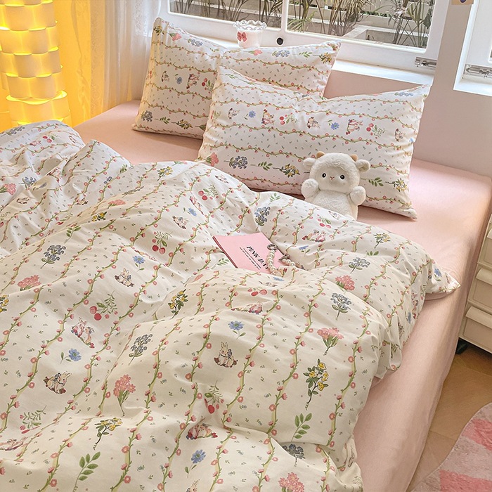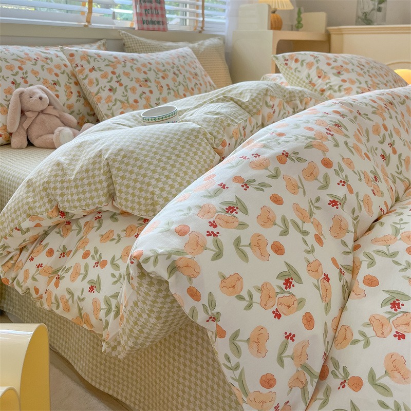 ins田园60支长绒棉床上四件套全棉春夏小清新被套床笠纯棉三件套
