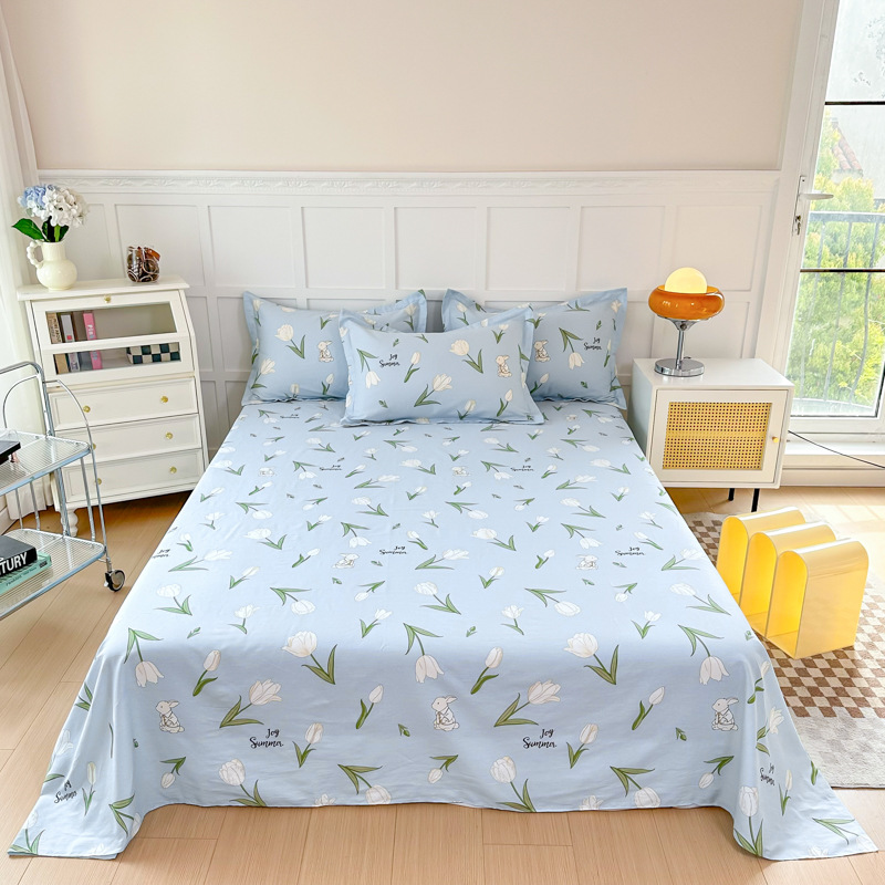 ins风40支全棉印花床单床笠单件单双人亲肤舒适纯棉被单1.5米1.8m