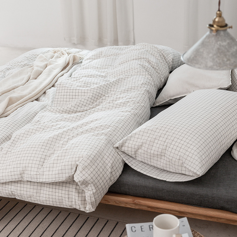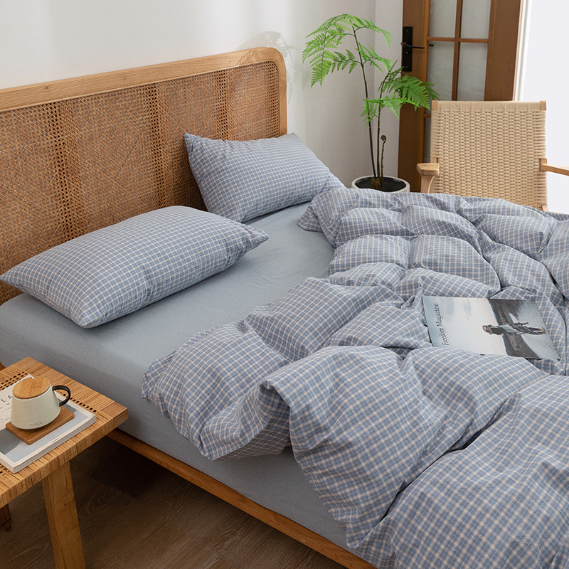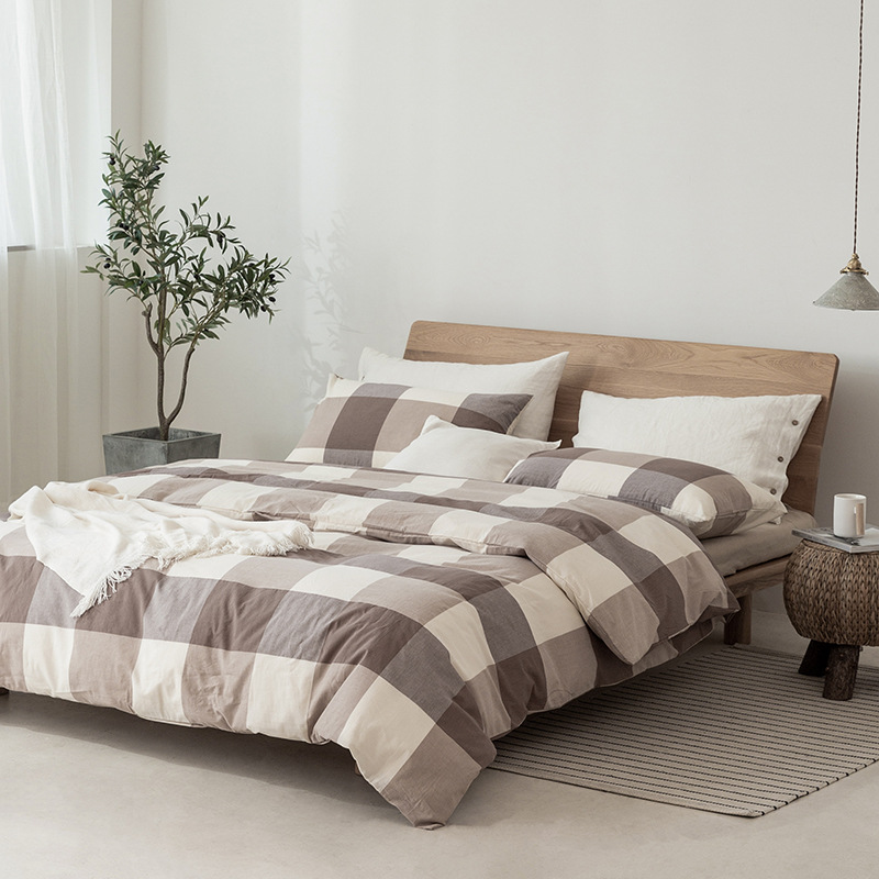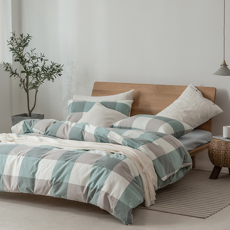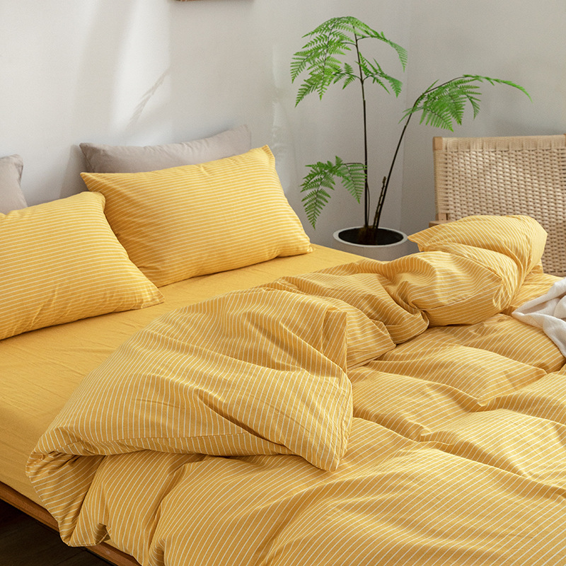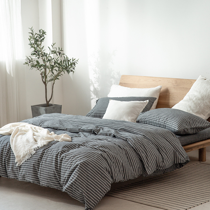 全棉色织水洗棉四件套纯棉无印良品被套日式床品床笠