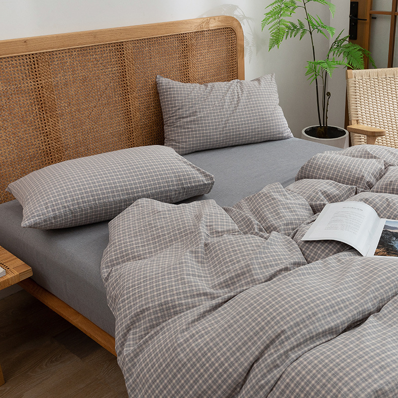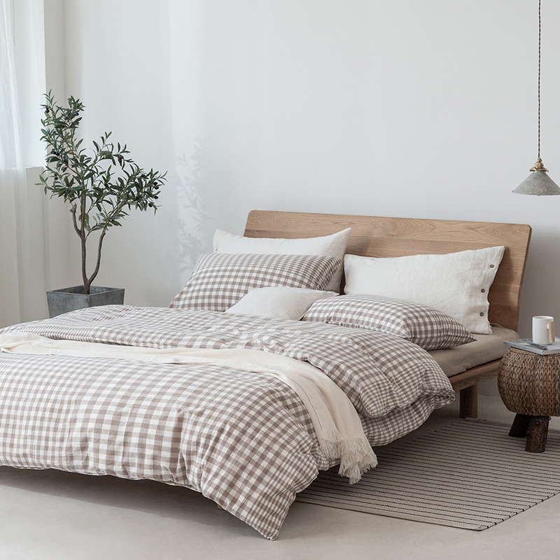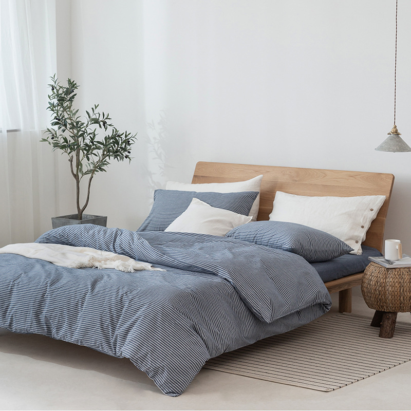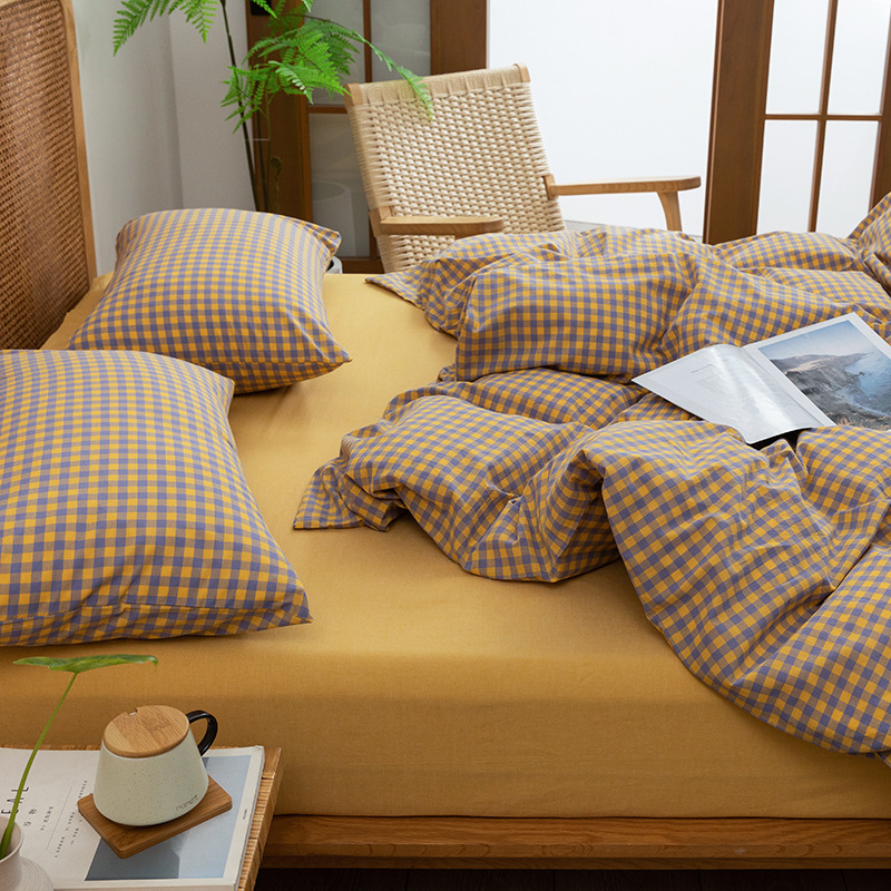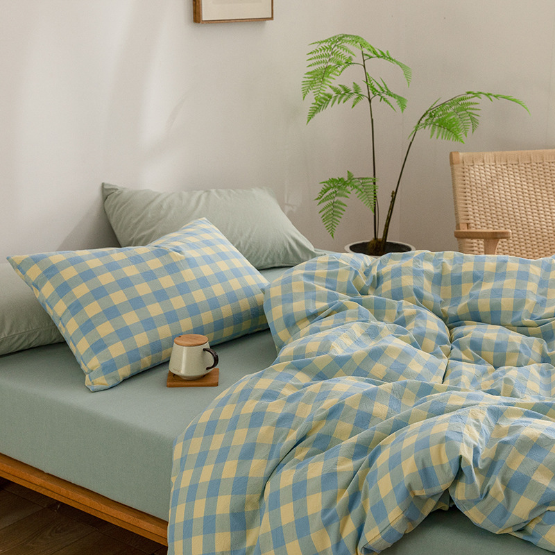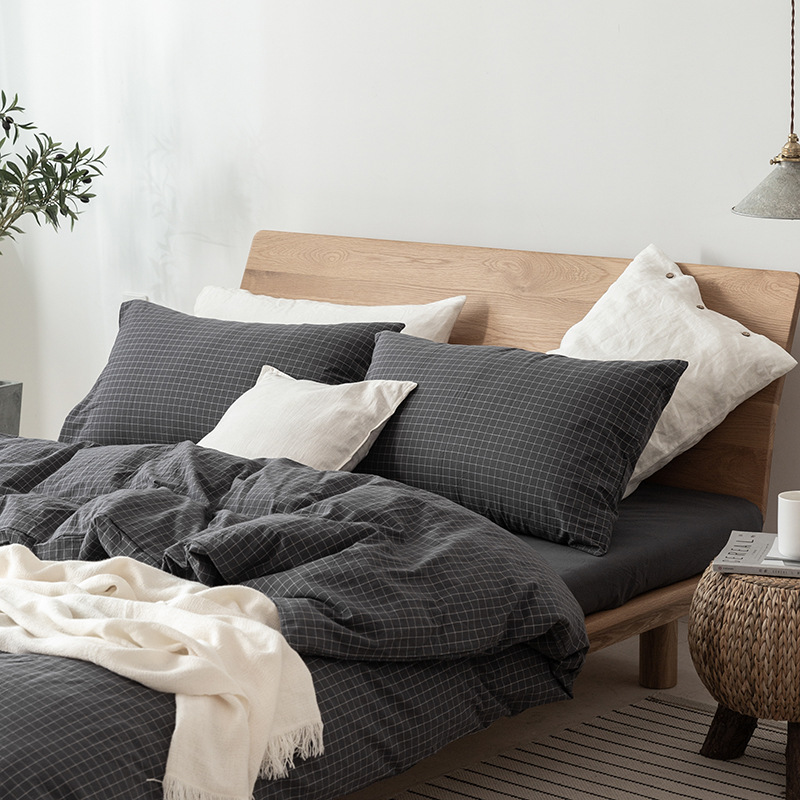 全棉色织水洗棉四件套纯棉无印良品被套日式床品床笠