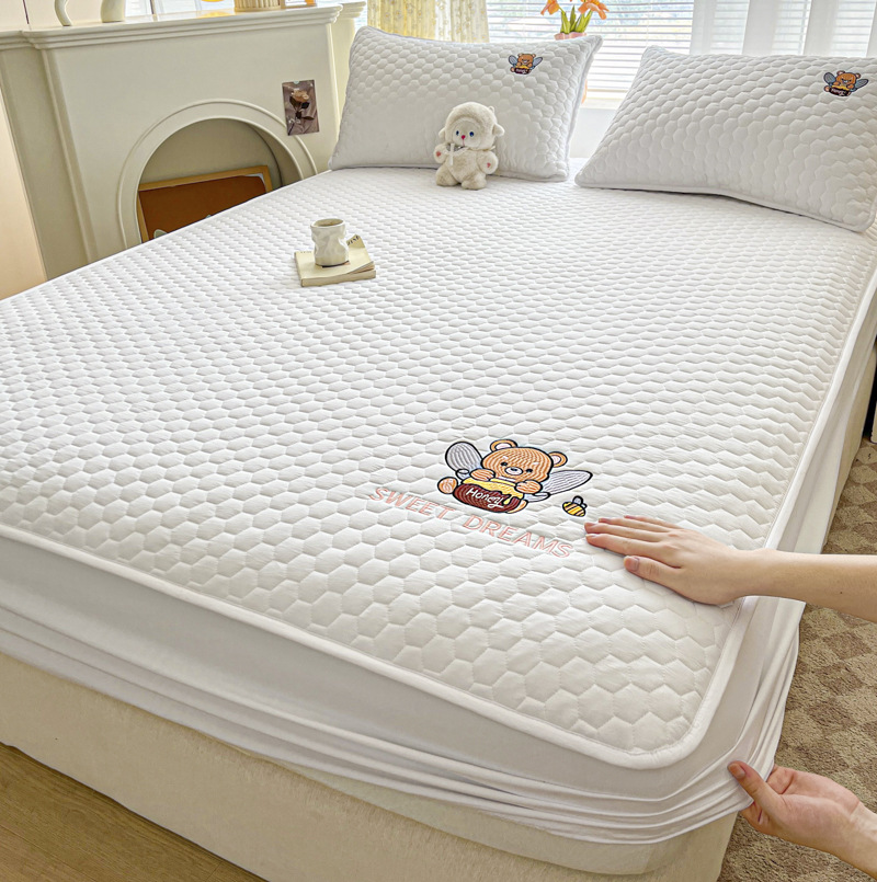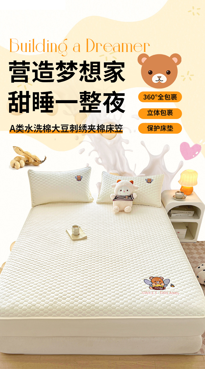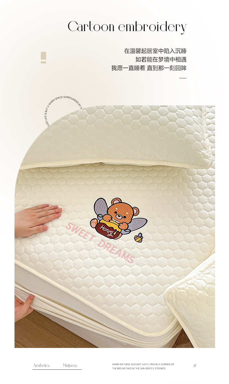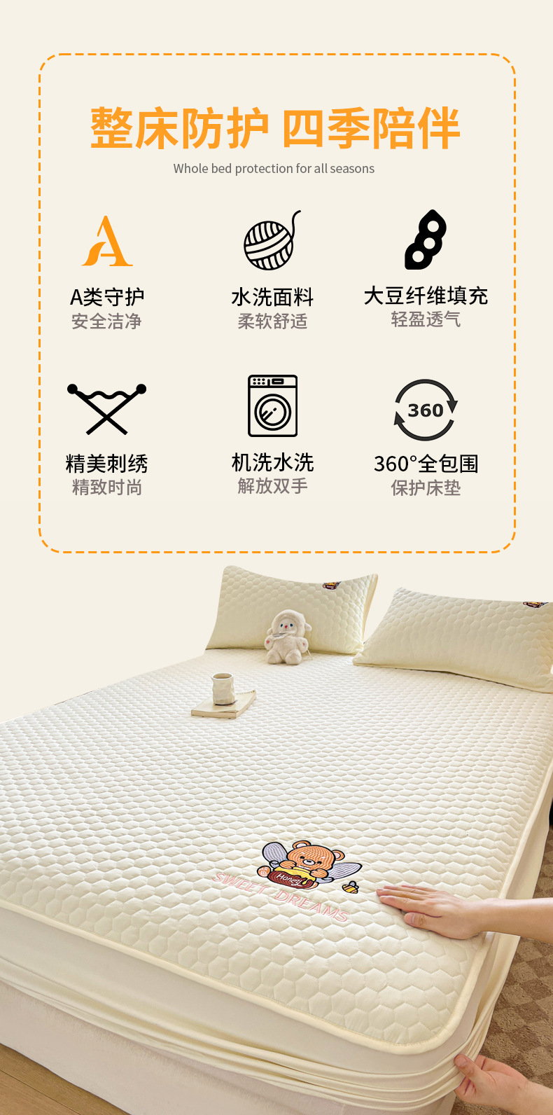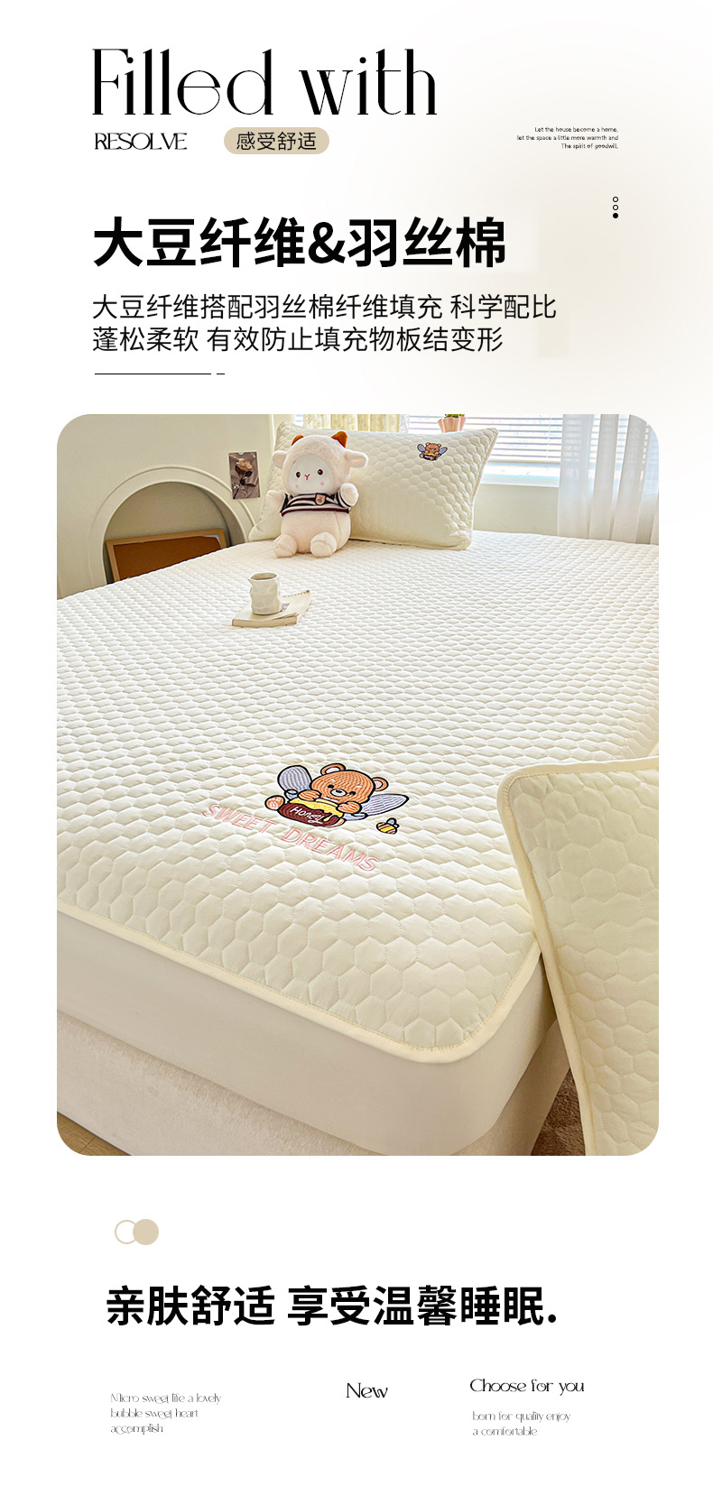 大豆夹棉卡通刺绣床笠床罩席梦思保护套单双人防尘罩单床笠