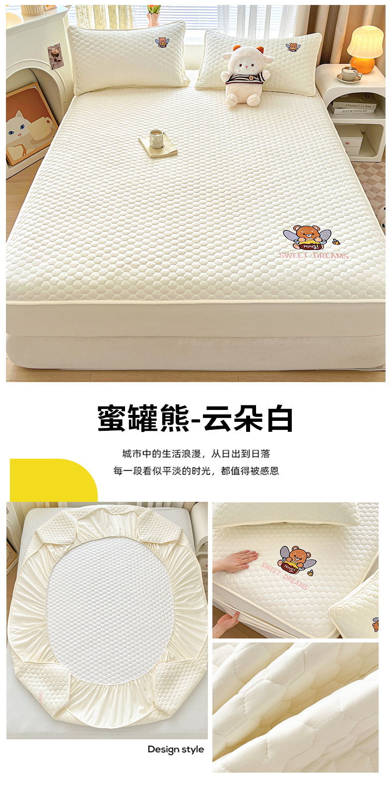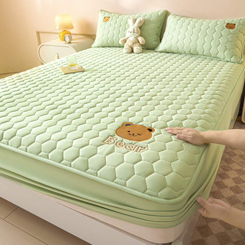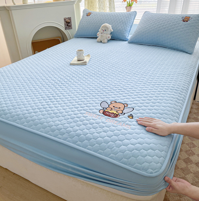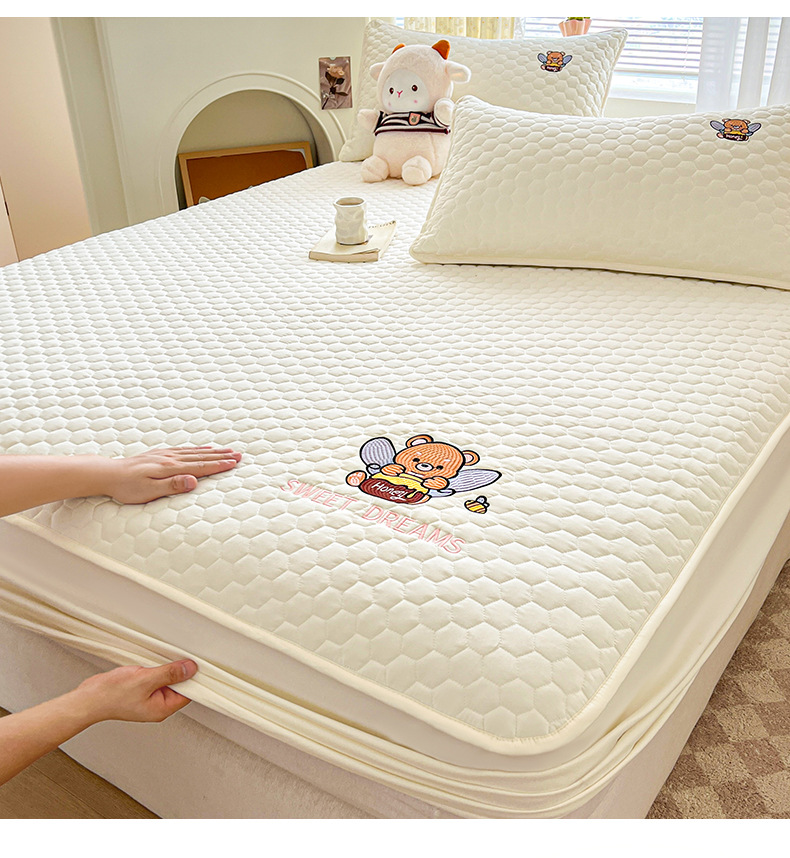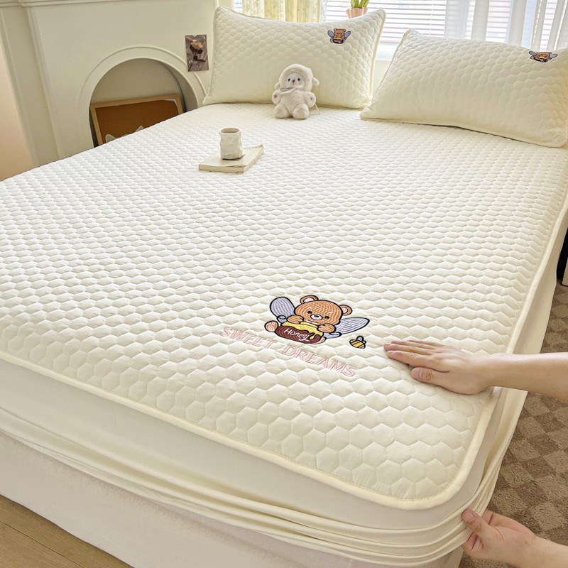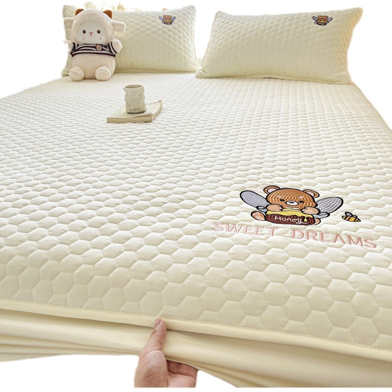 大豆夹棉卡通刺绣床笠床罩席梦思保护套单双人防尘罩单床笠
