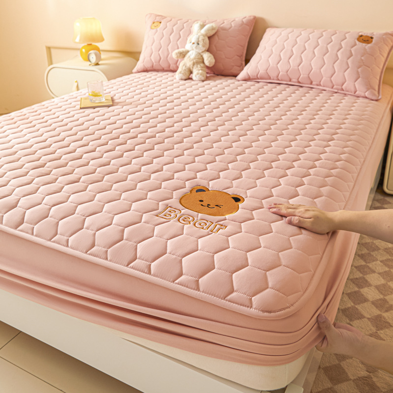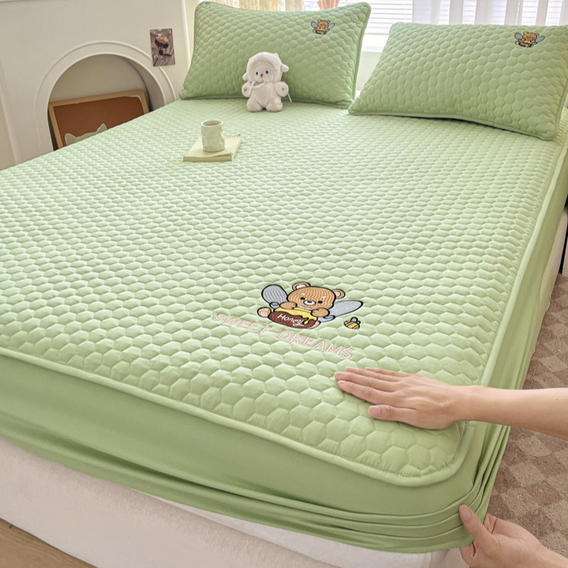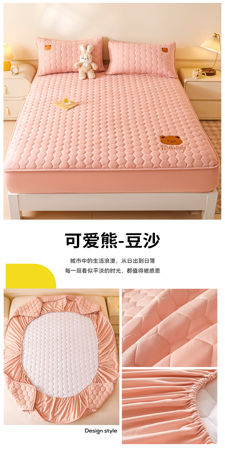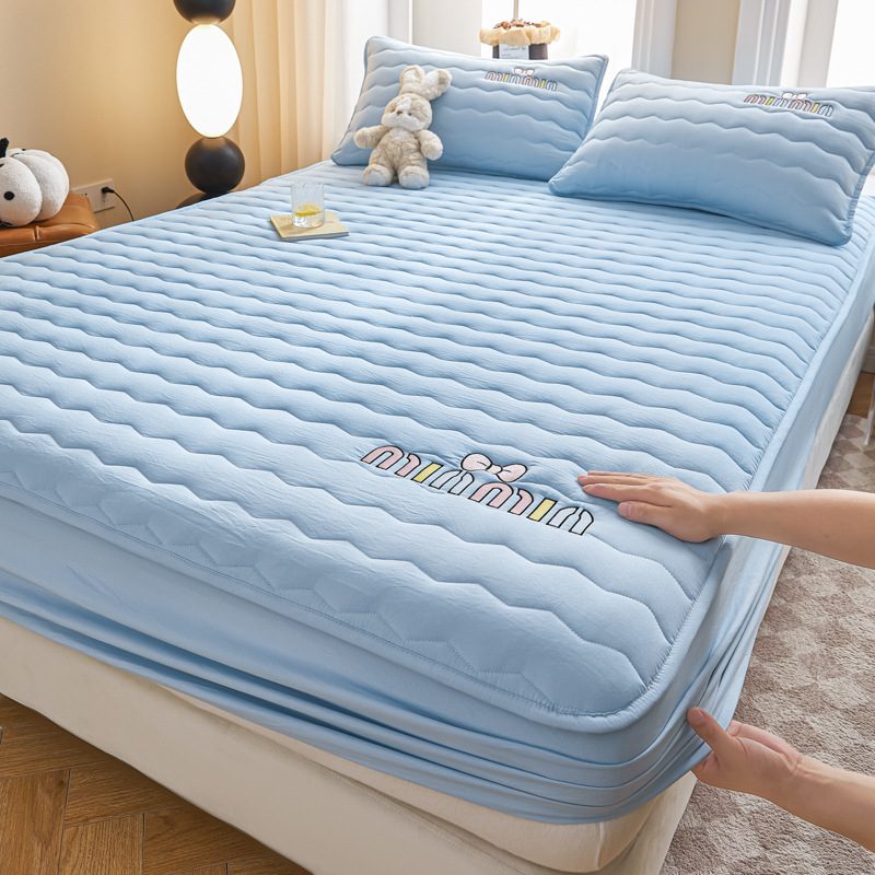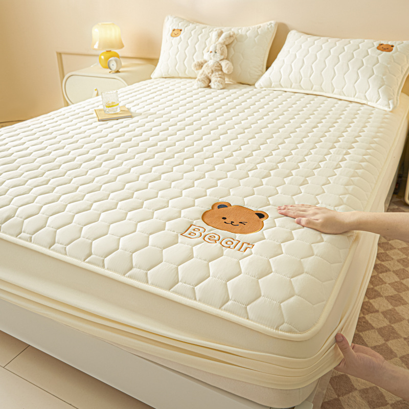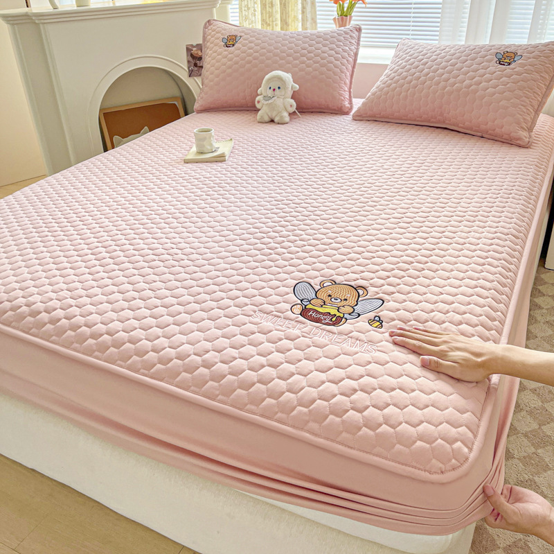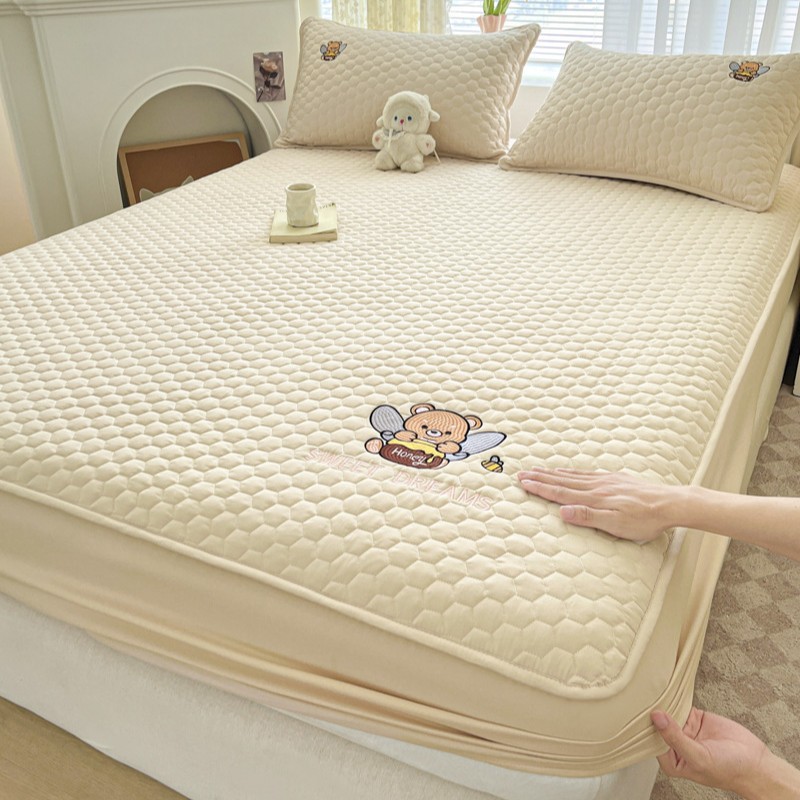 大豆夹棉卡通刺绣床笠床罩席梦思保护套单双人防尘罩单床笠