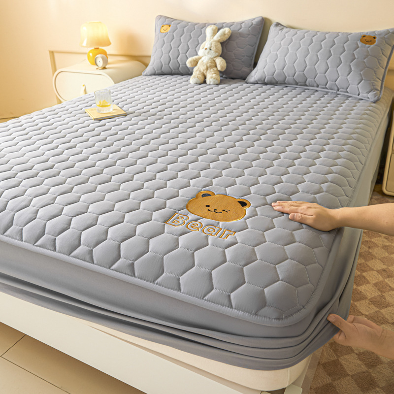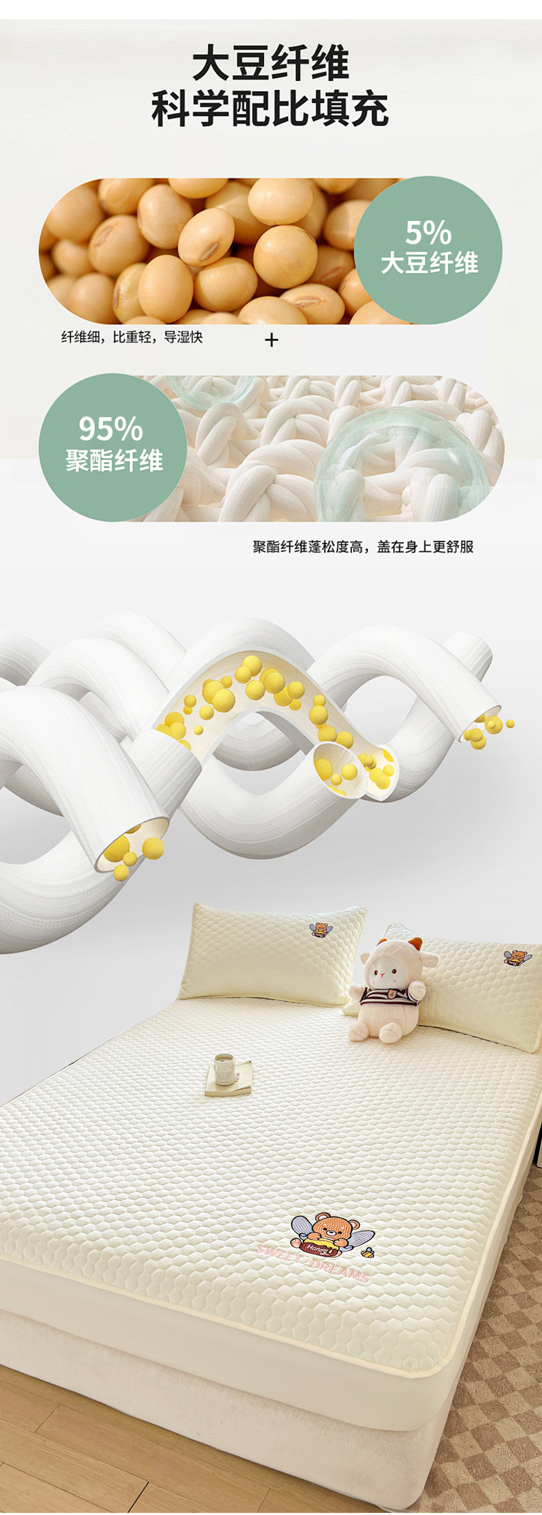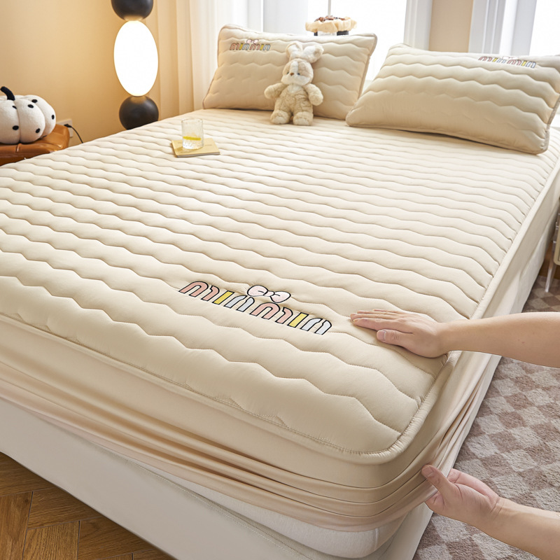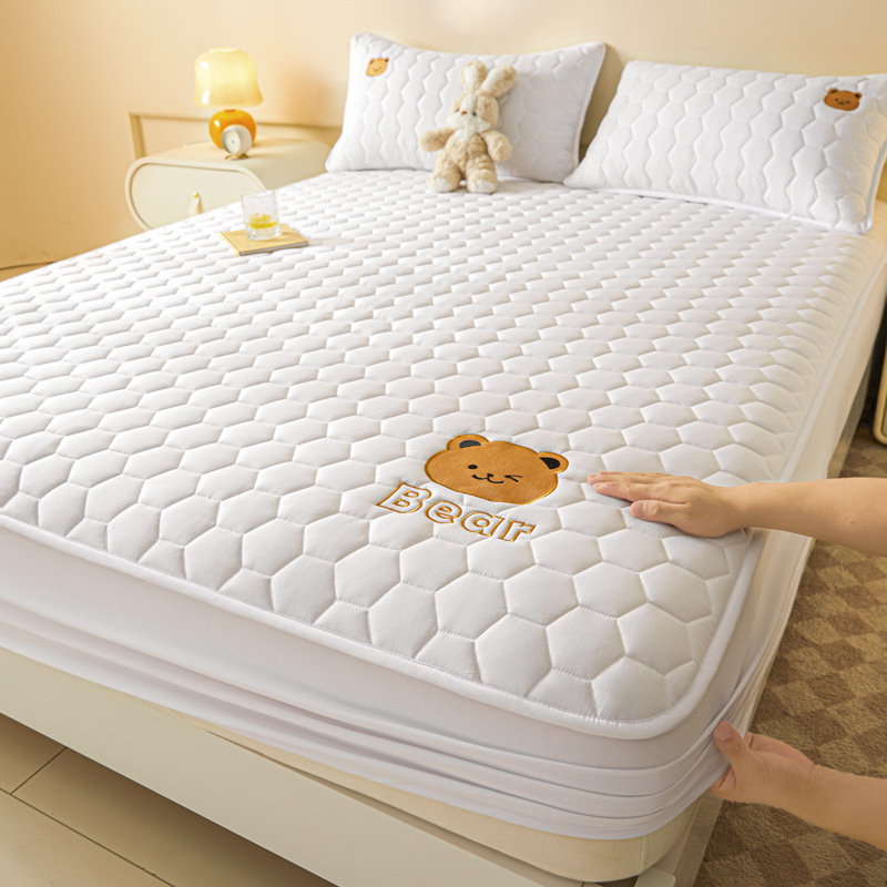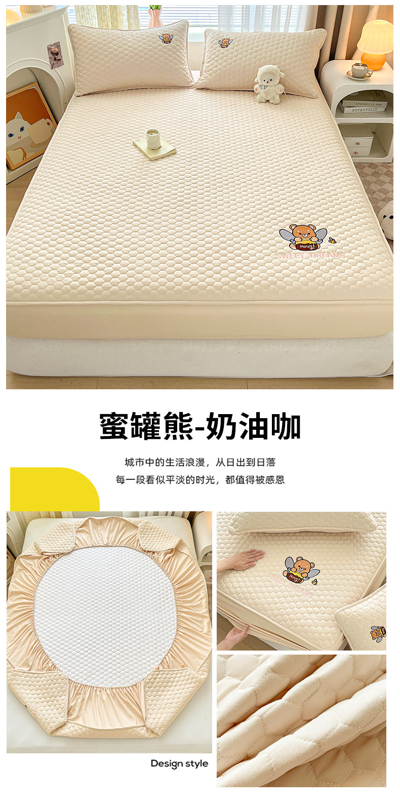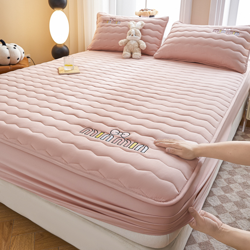 大豆夹棉卡通刺绣床笠床罩席梦思保护套单双人防尘罩单床笠