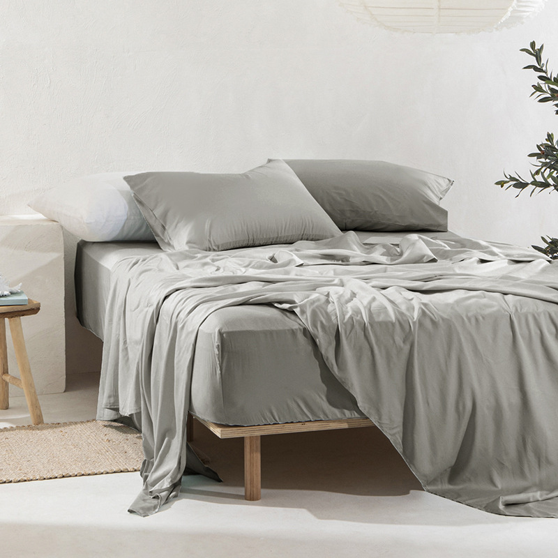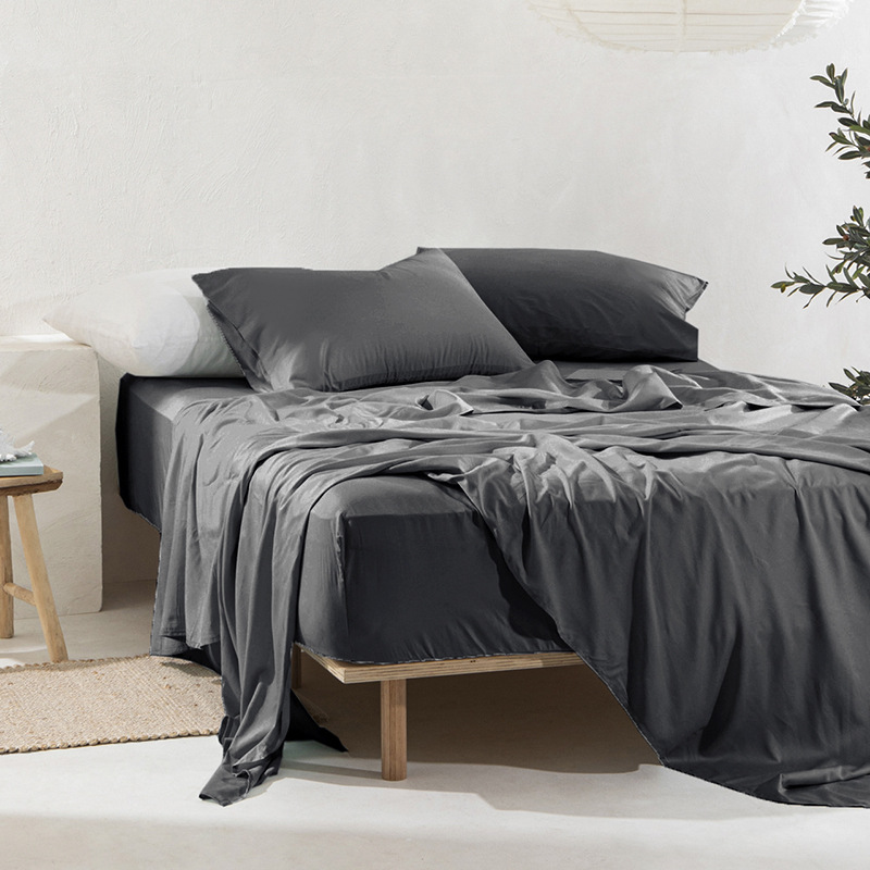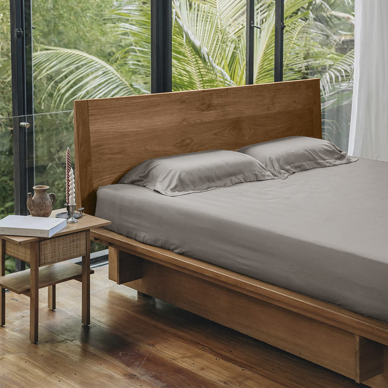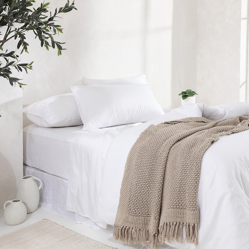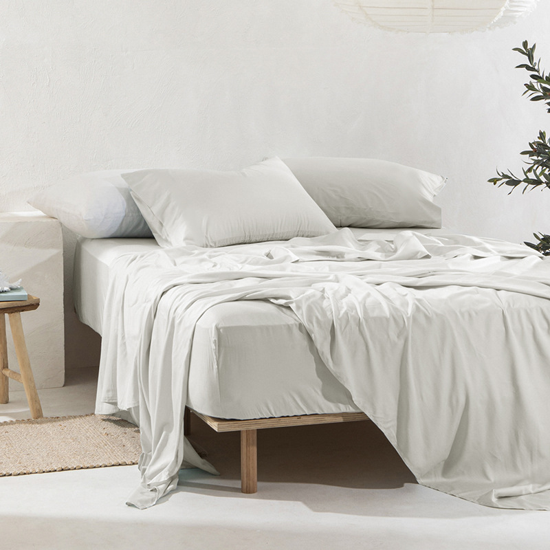床罩保护套夏凉感裸睡80支缎纹白色水洗竹纤维床笠