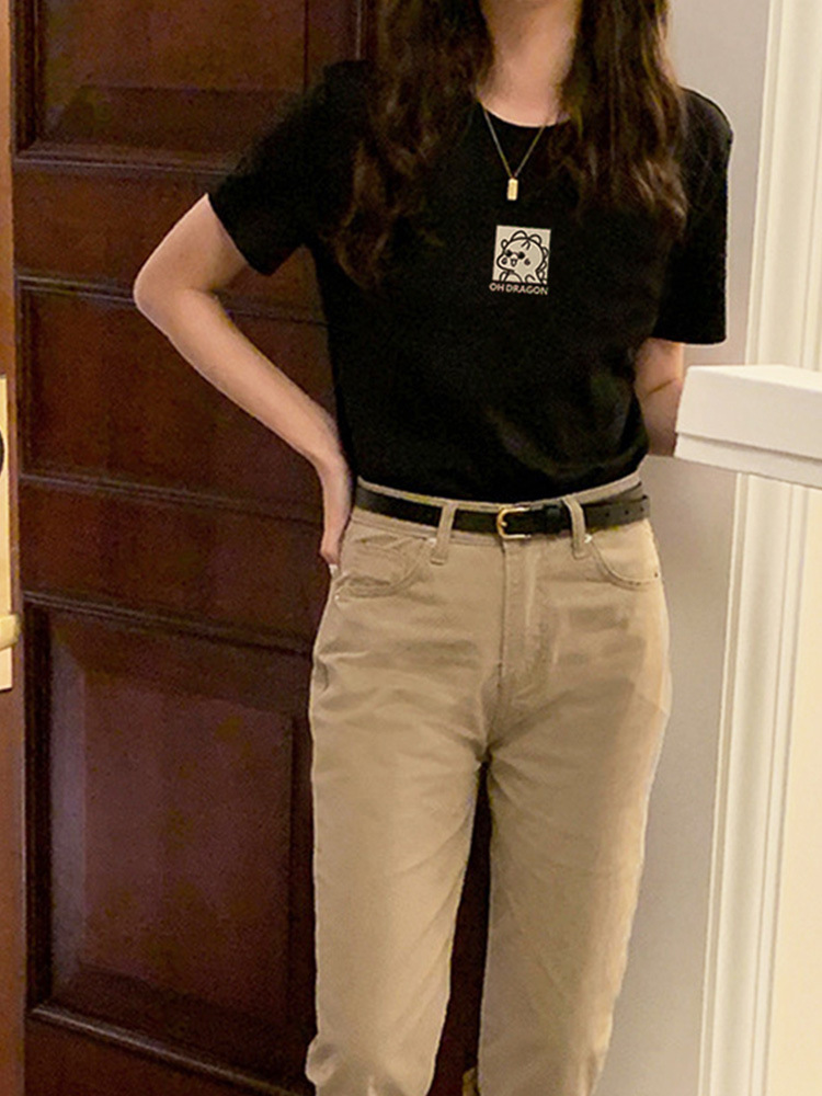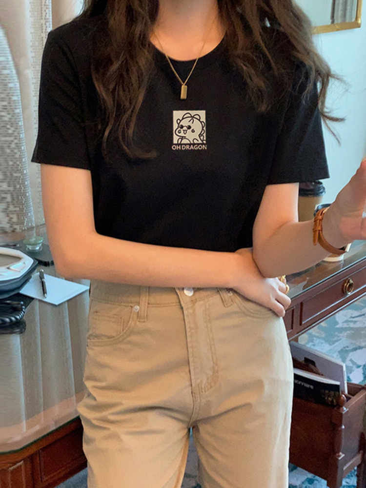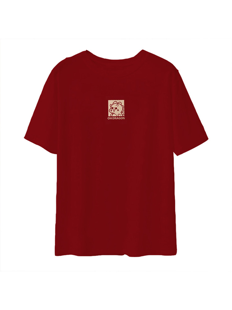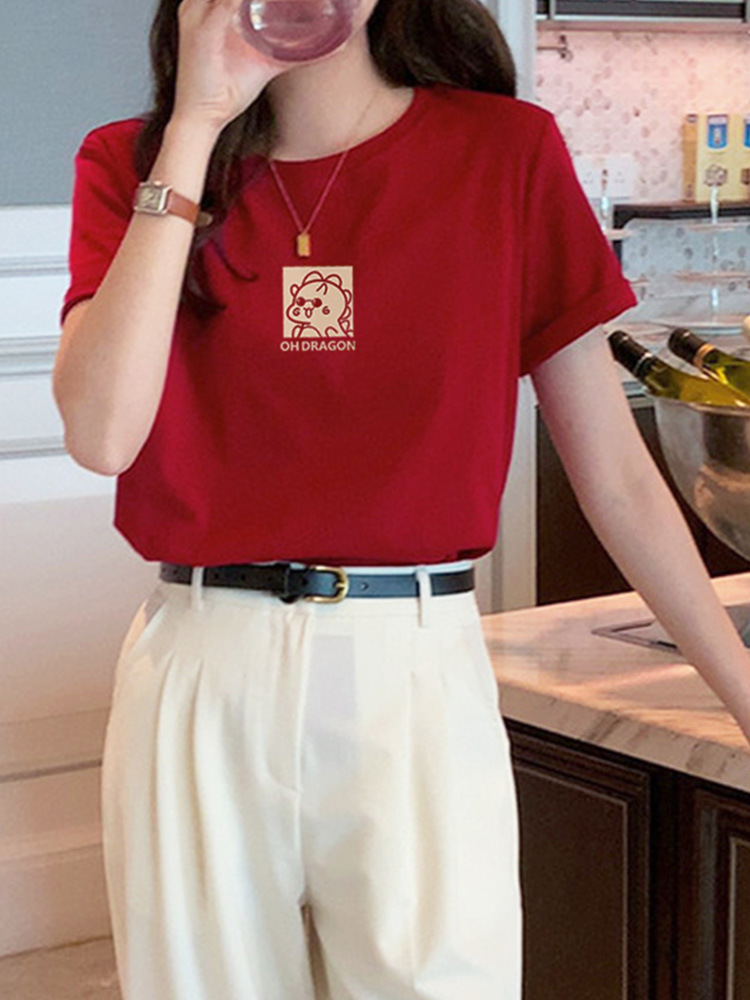红色正肩短袖t恤女夏季新款纯棉圆领上衣韩版宽松龙年体恤潮