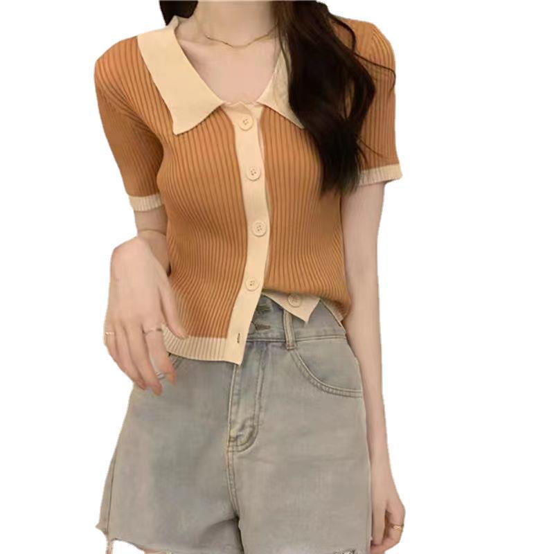 短袖正肩t恤女夏季法式别致撞色小个子polo衫显瘦短款上衣ins