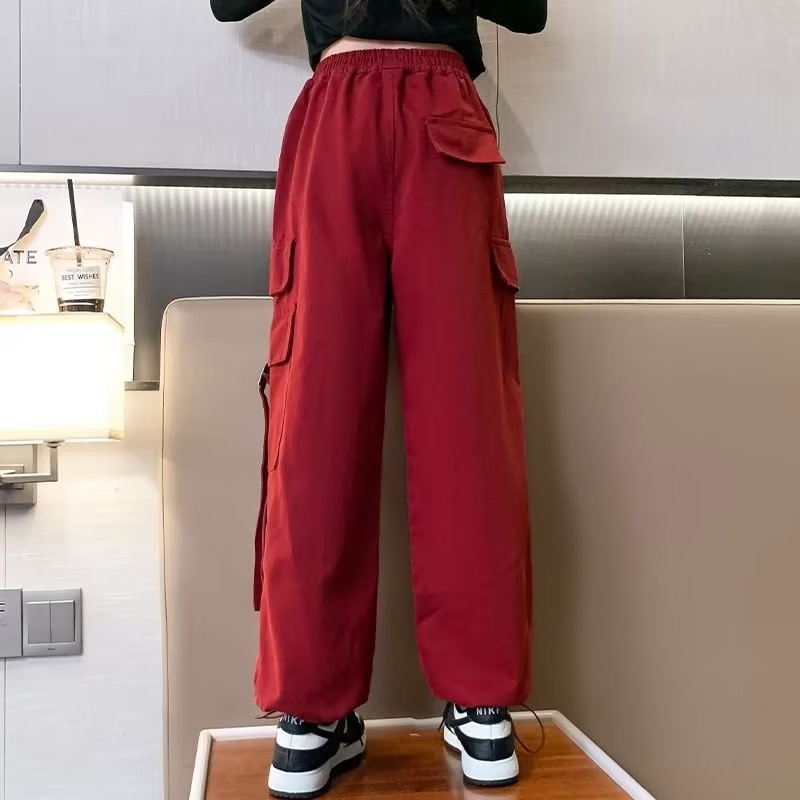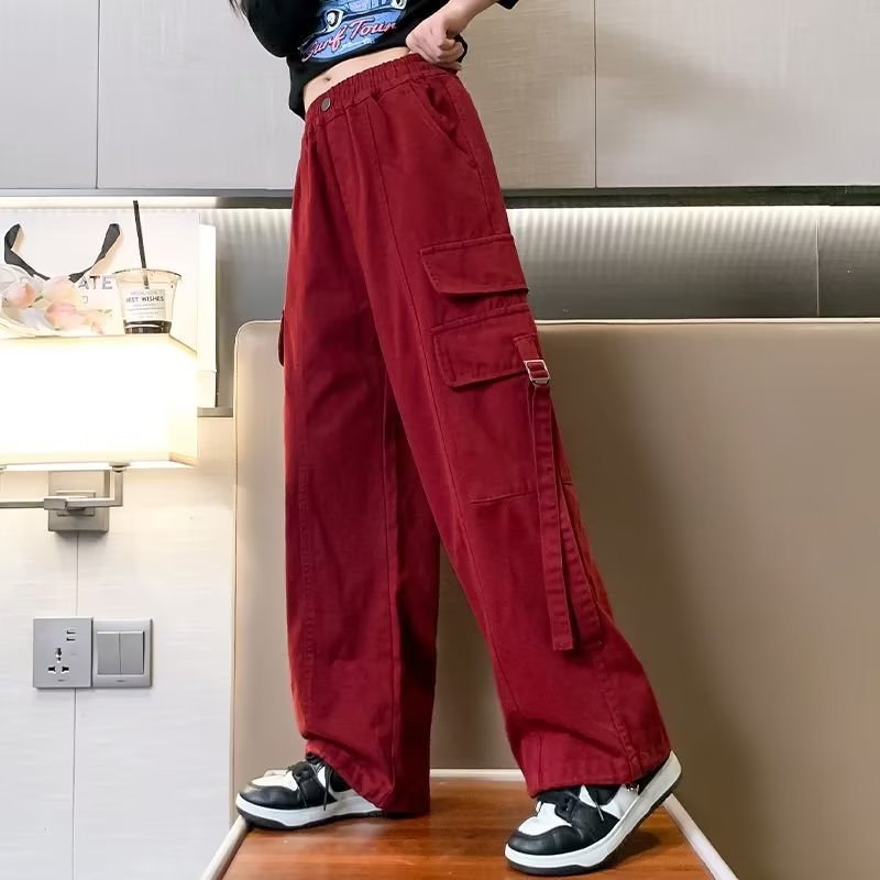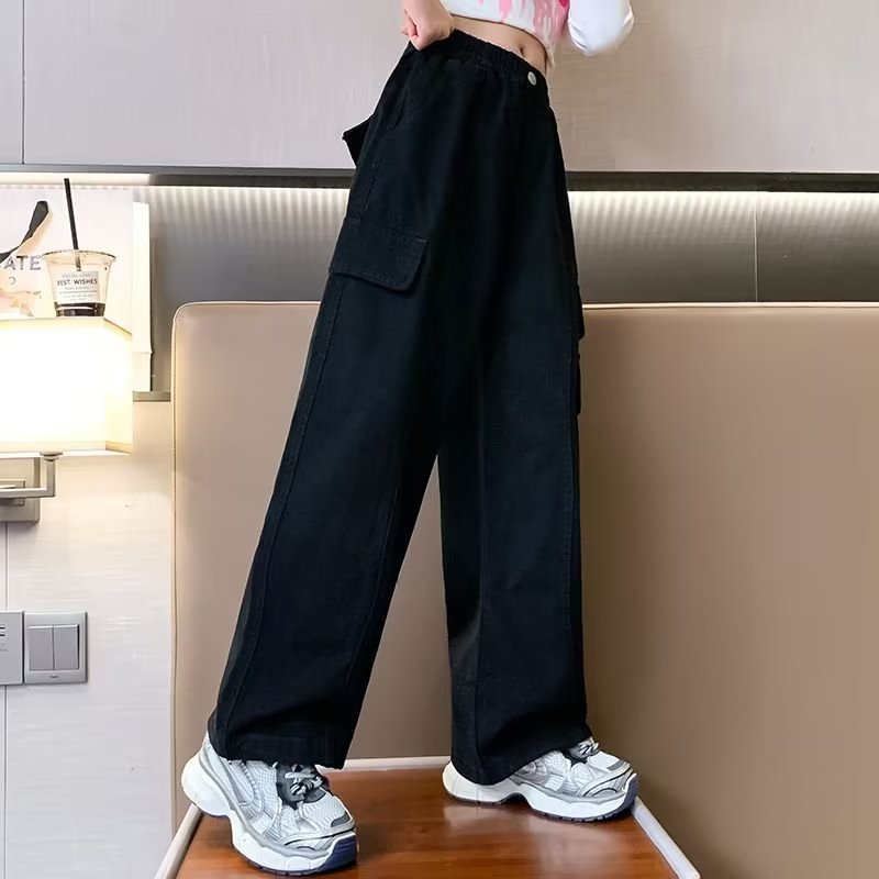 儿童潮流美式工装裤春季新款女童高街洋气直筒阔腿休闲长裤潮