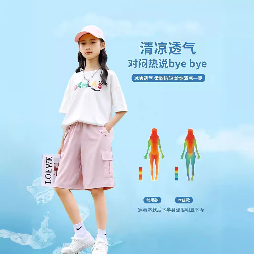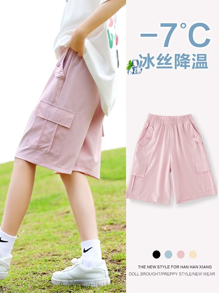 儿童工装裤冰丝夏季薄款女童速干裤子中大童五分洋气运动短裤炸街