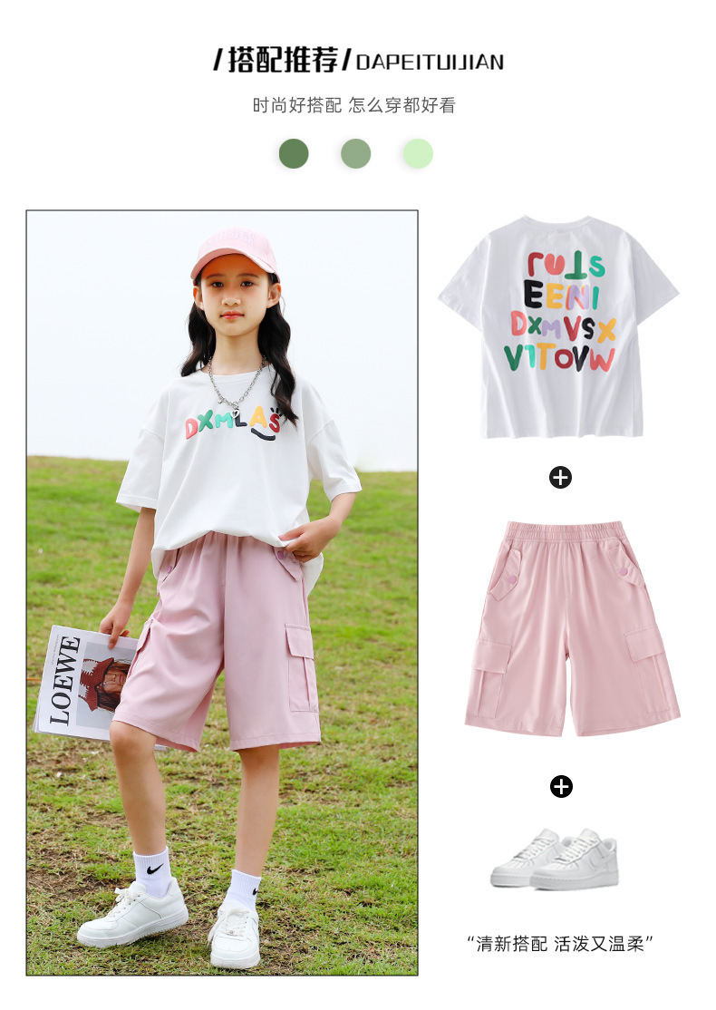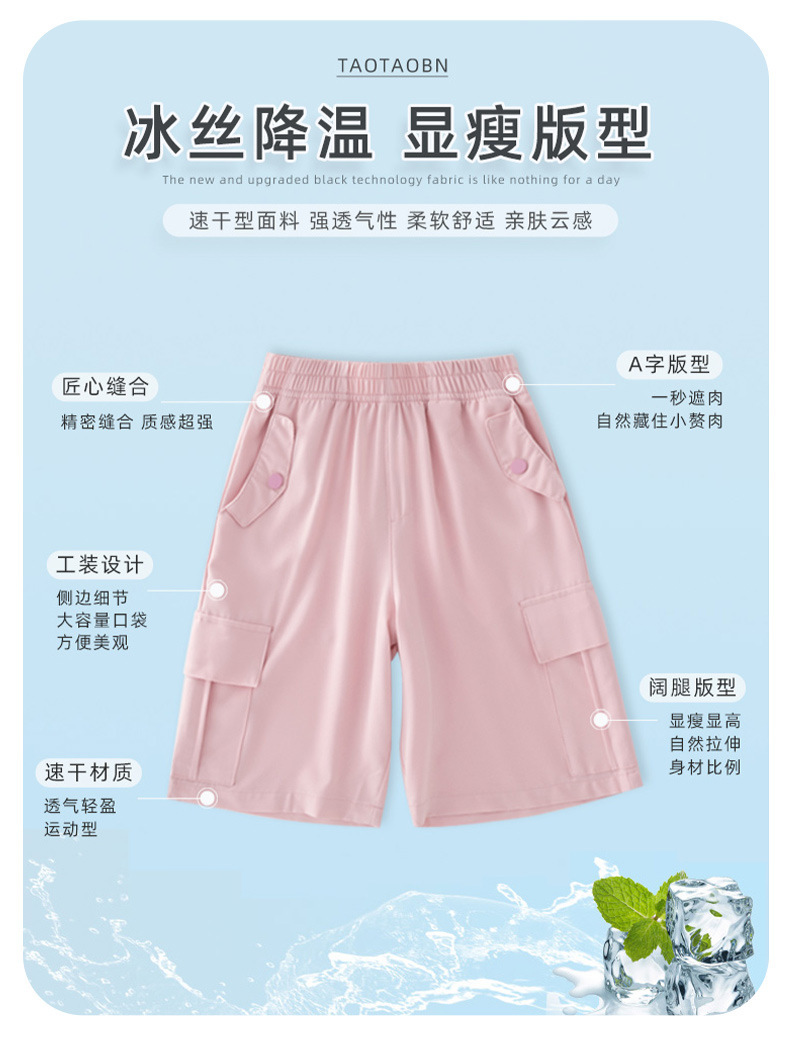 女童工装短裤儿童夏季外穿冰丝五分裤女孩速干运动裤子中大童夏装