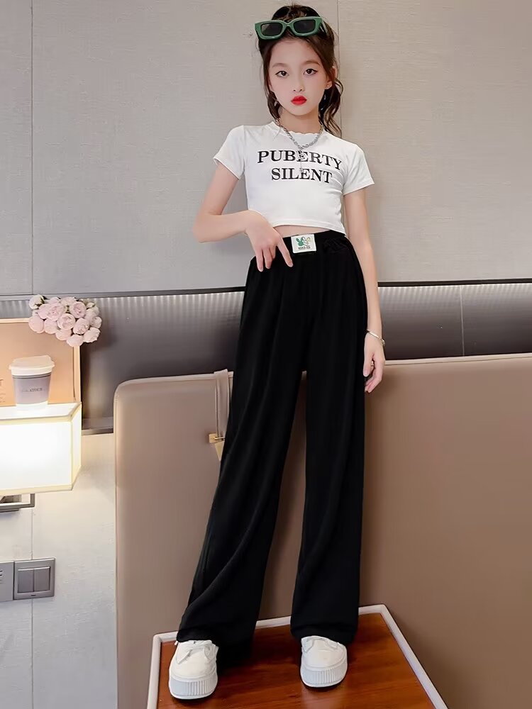 女童夏装冰丝阔腿裤新款中大童直筒女孩防蚊儿童裤子夏季长裤