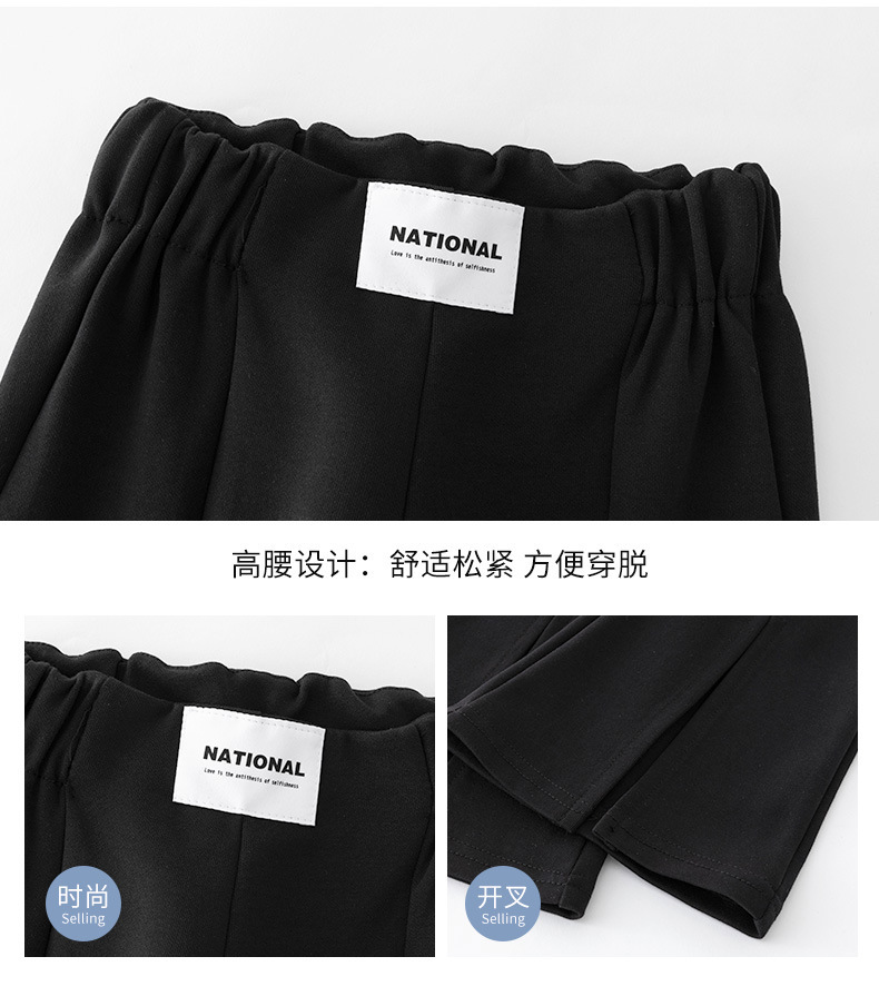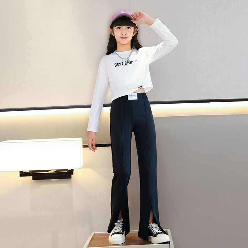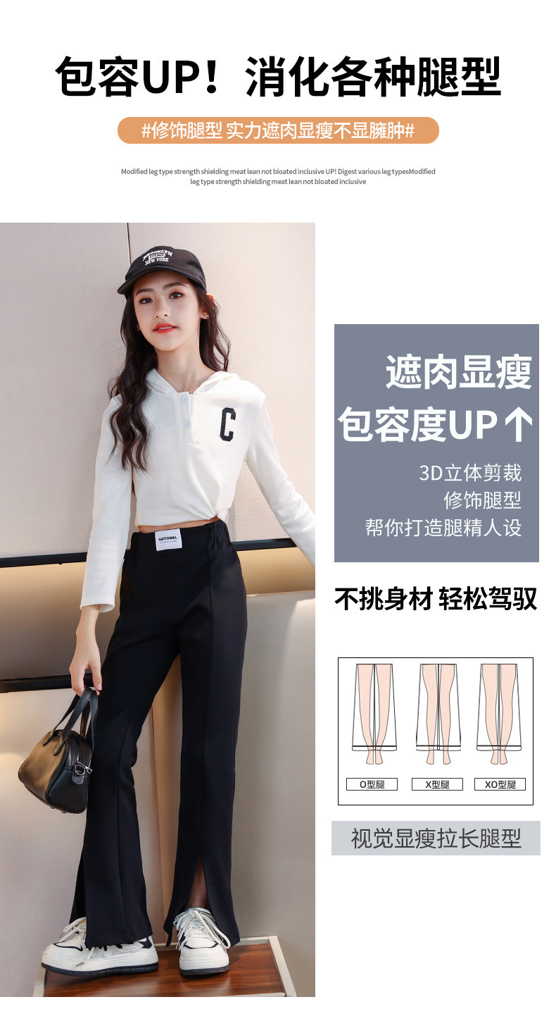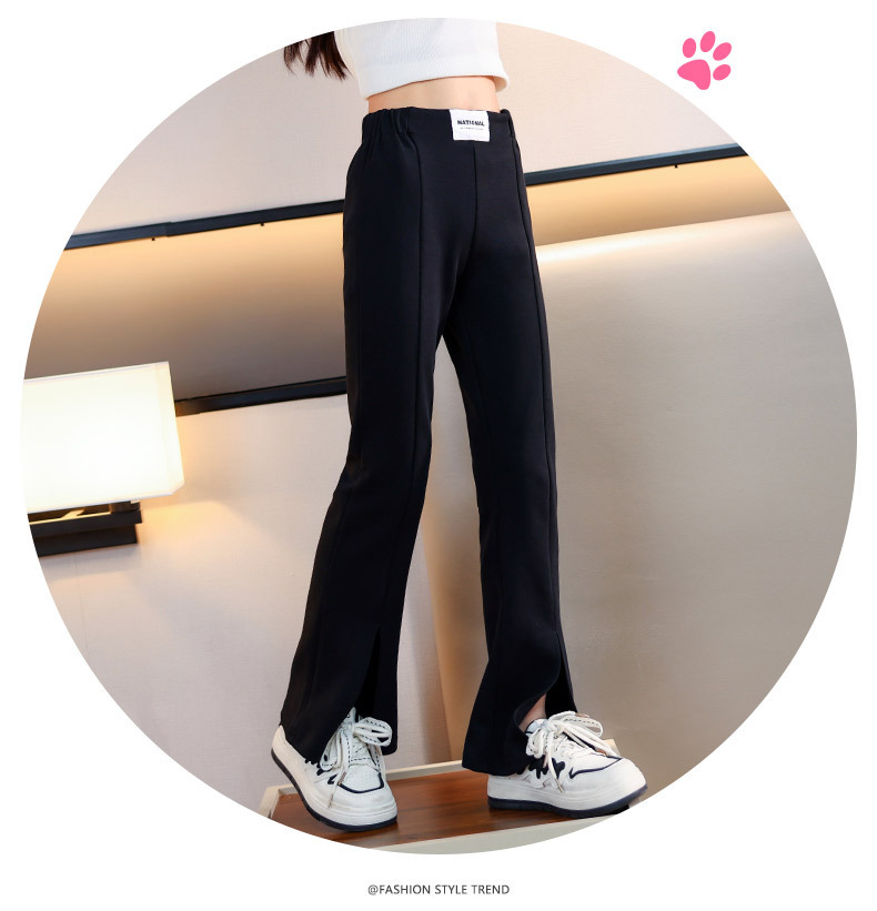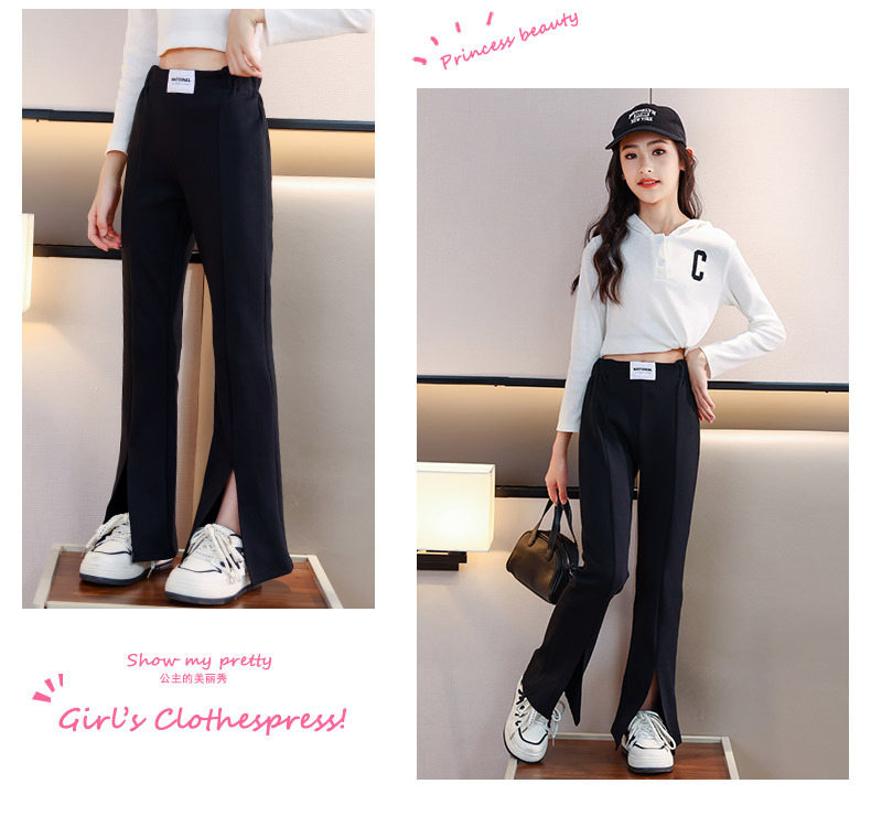 儿童棉质裤子新款女大童开叉喇叭裤黑色小女孩洋气时髦春秋装