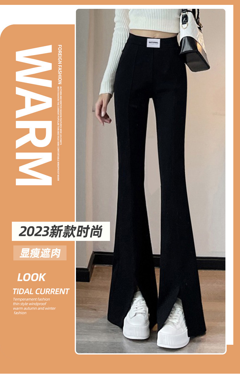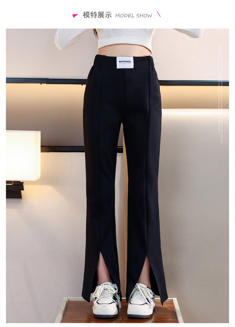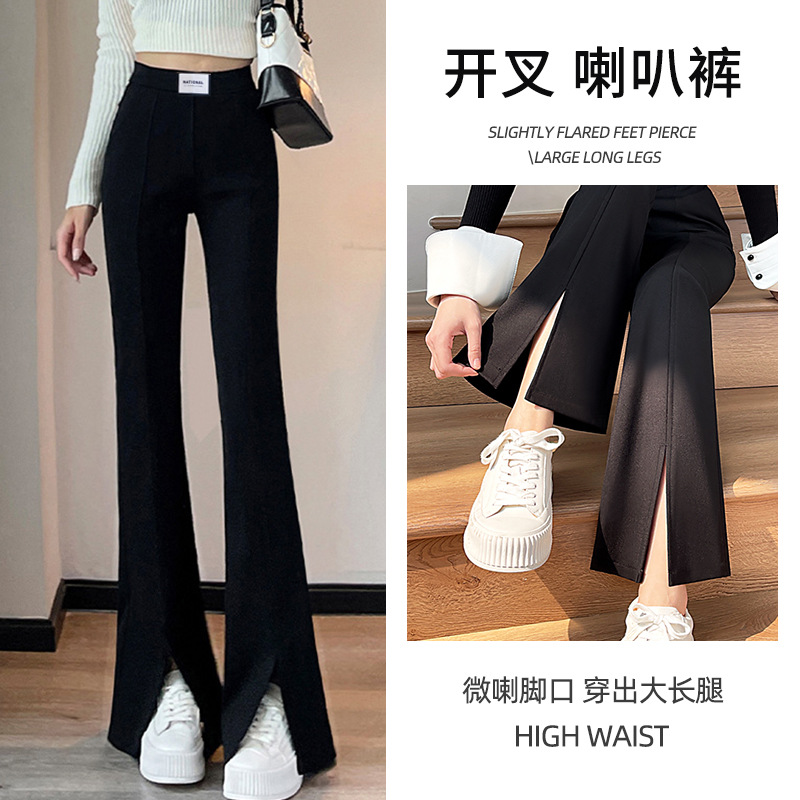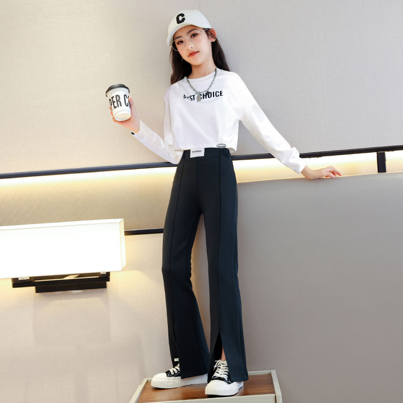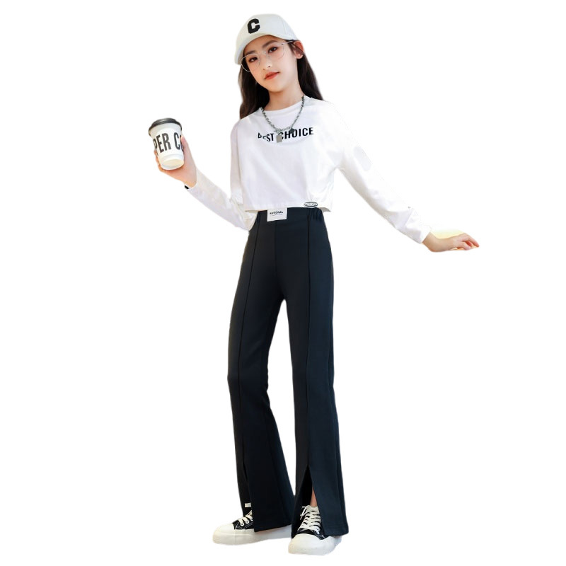 儿童棉质裤子新款女大童开叉喇叭裤黑色小女孩洋气时髦春秋装