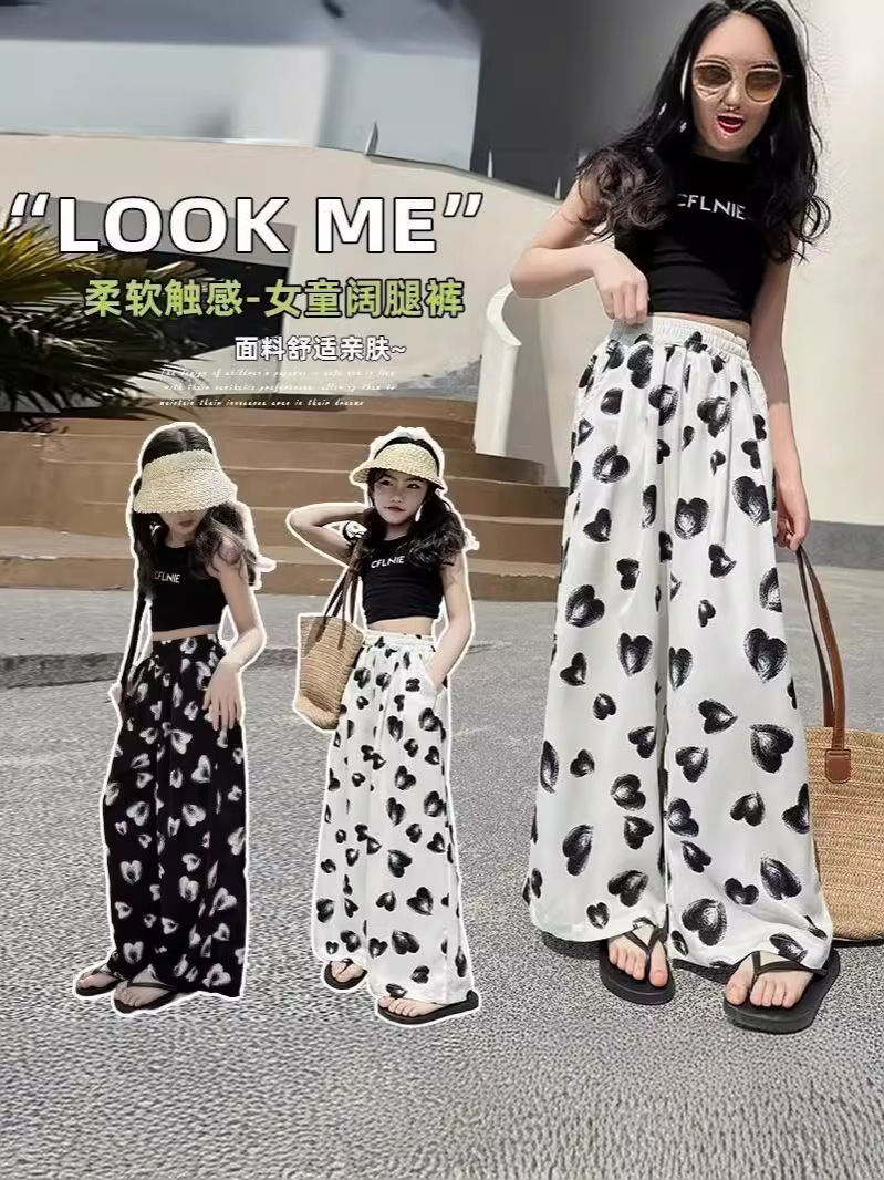 女童裤子新款夏装洋气黑白色中大童直筒宽松休闲夏季阔腿裤潮