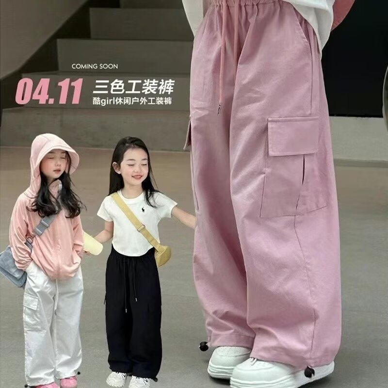 女童裤子工装裤新款中大童洋气时髦儿童休闲时尚舒适阔腿裤潮