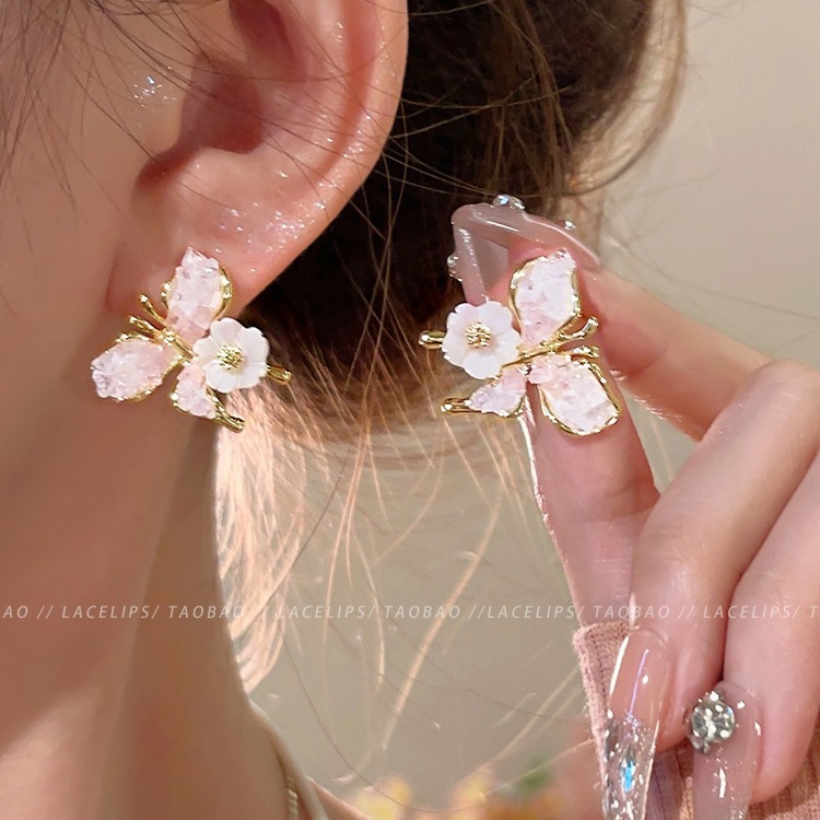 花影蝶恋~水晶花朵珍珠耳环小众设计感独特耳钉高级感气质耳饰女