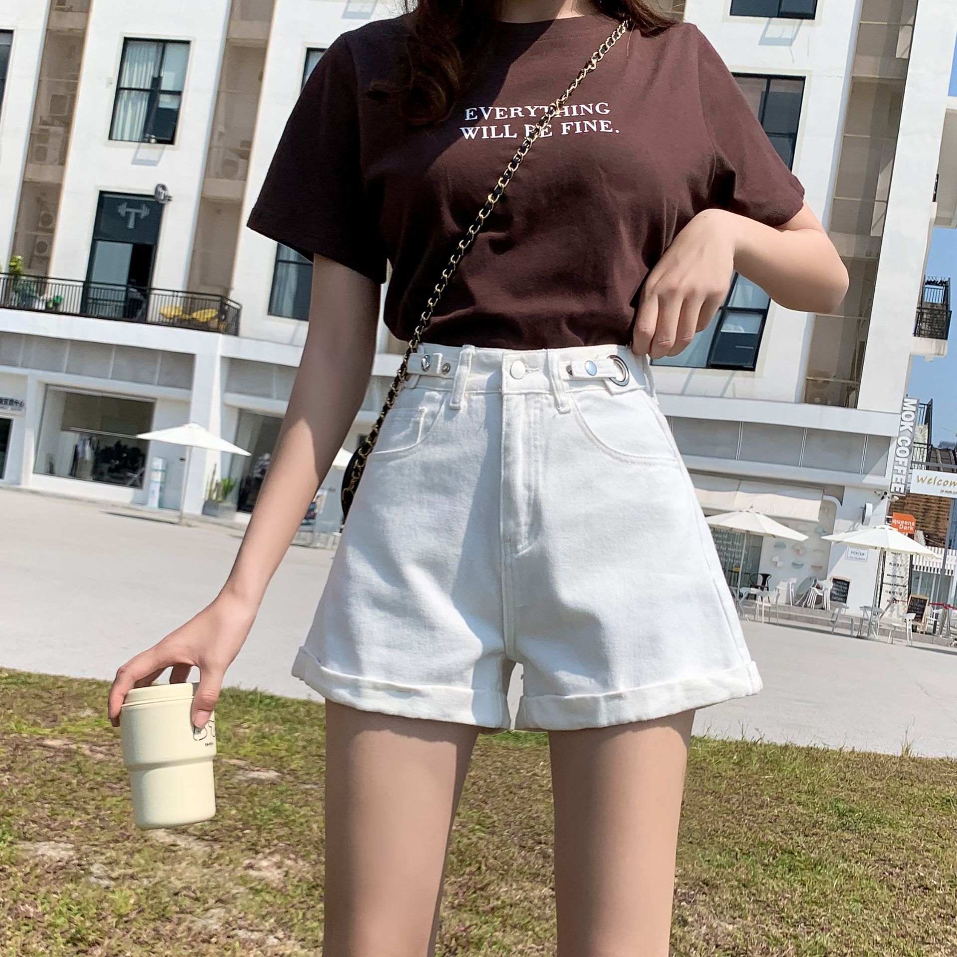 高腰白色牛仔短裤女夏薄款新款设计感显瘦辣妹三分短裤热裤