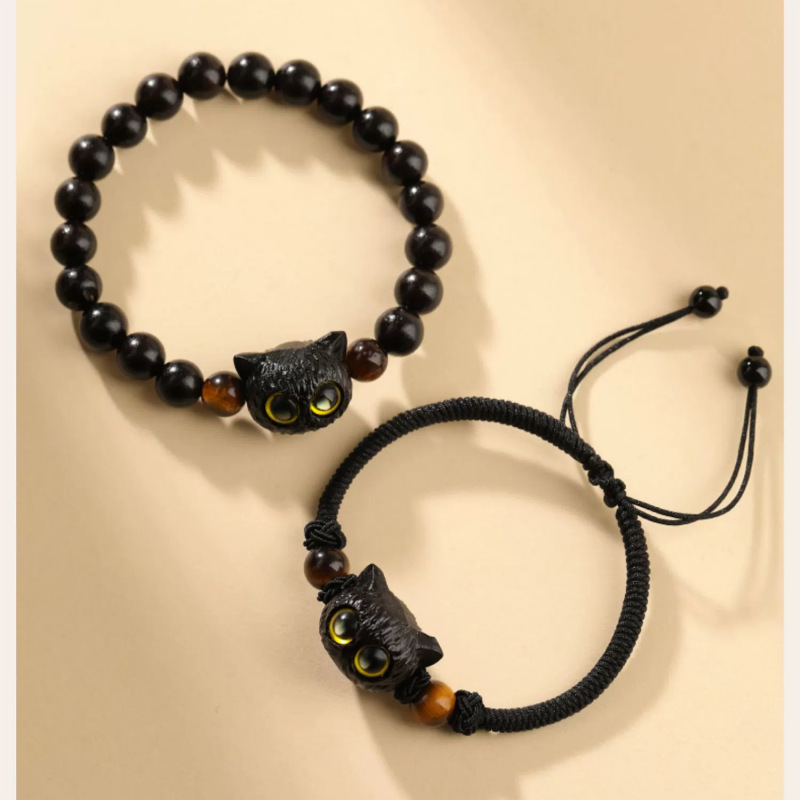 黑檀木小猫猫咪手串女生炭烧猫爪菩提根手链盘玩檀木文玩手绳礼物