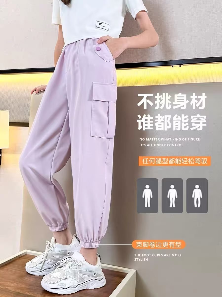 女童休闲裤春季薄款新款中大童宽松工装裤儿童装防蚊长裤子潮