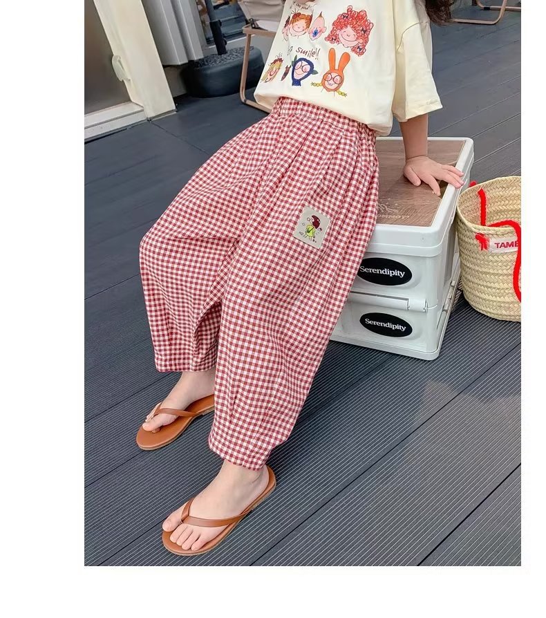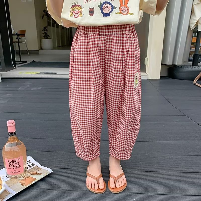 女童裤子新款洋气秋季女孩春秋儿童装休闲格子长裤宝宝防蚊裤