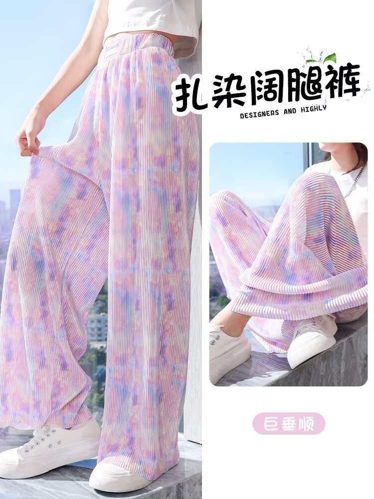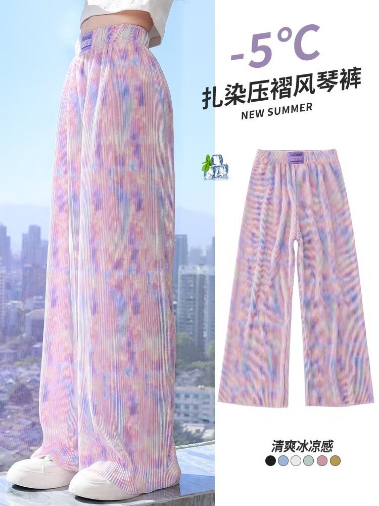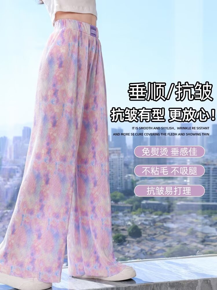 女童阔腿裤夏季薄款儿童冰丝裤子大童夏装女孩防蚊裤直筒长裤休闲