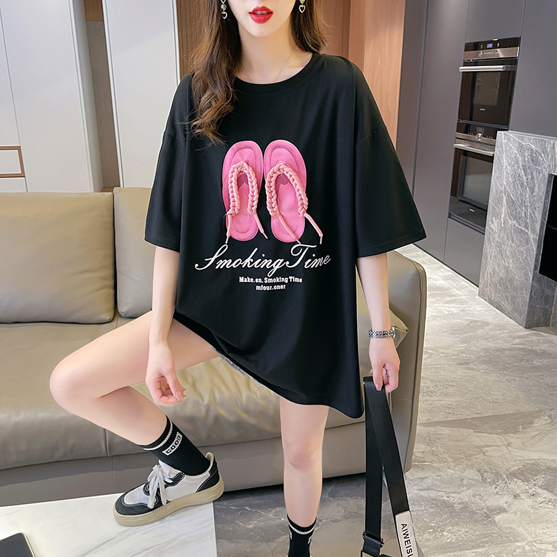韩版oversize学院风后包领立体中长款短袖T恤女韩版上衣