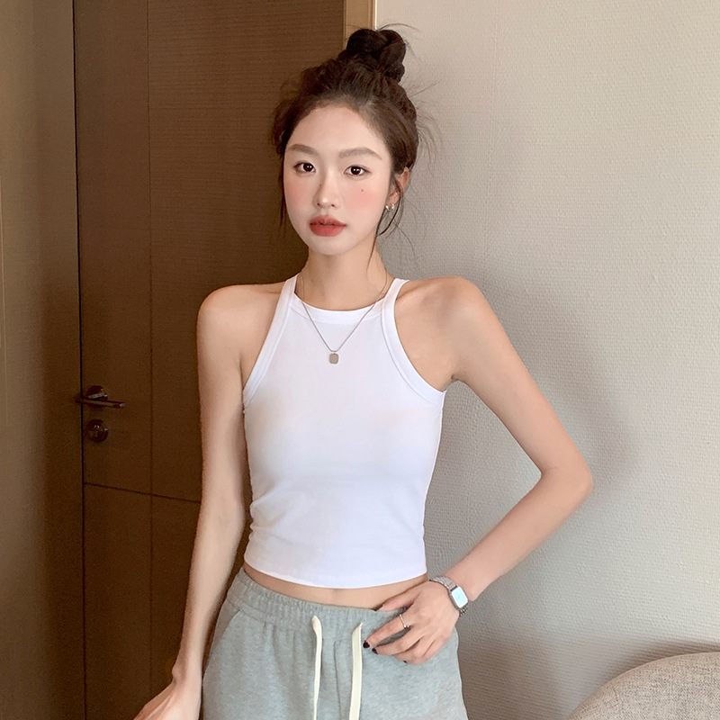 白色小吊带背心女内搭夏新款纯棉高腰短款挂脖上衣设计感外穿