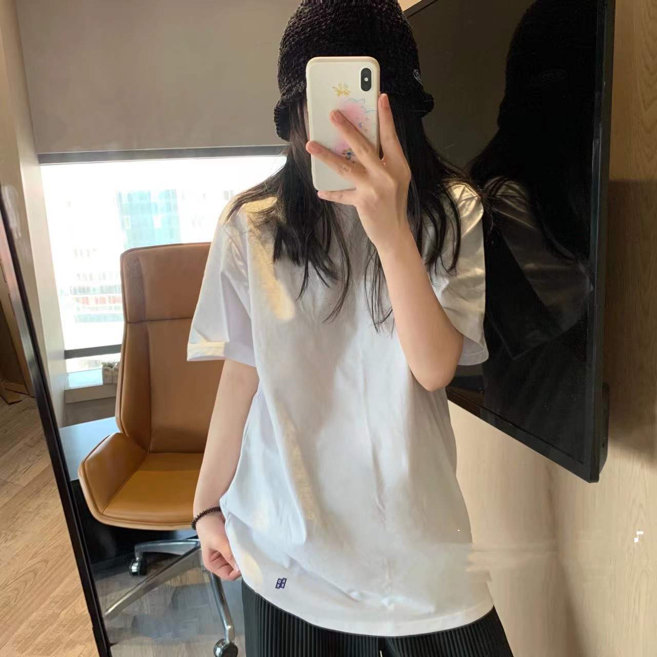 ADER潮牌经典简约纯色黑白T恤情侣同款圆领打底短袖高街小标半袖