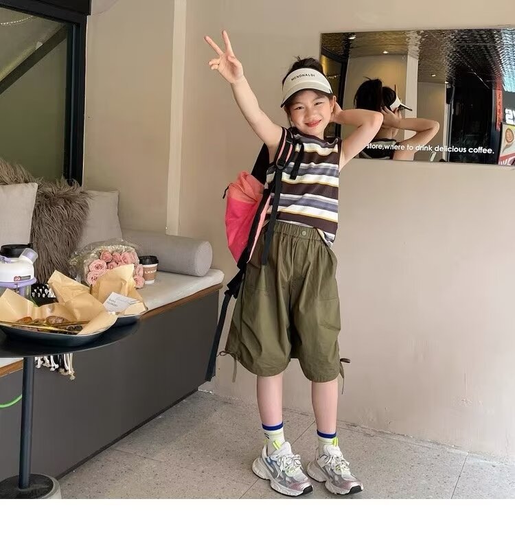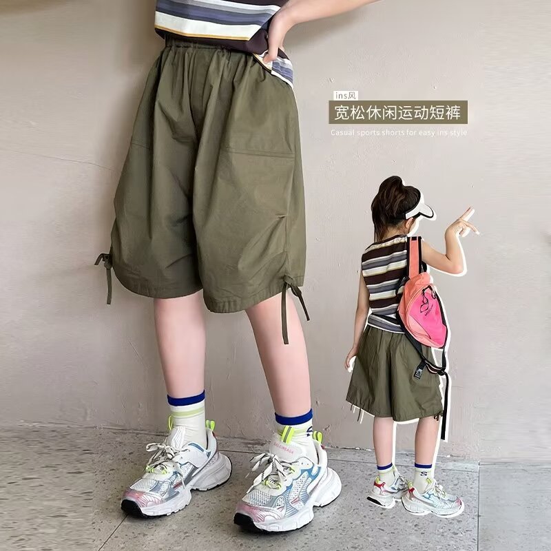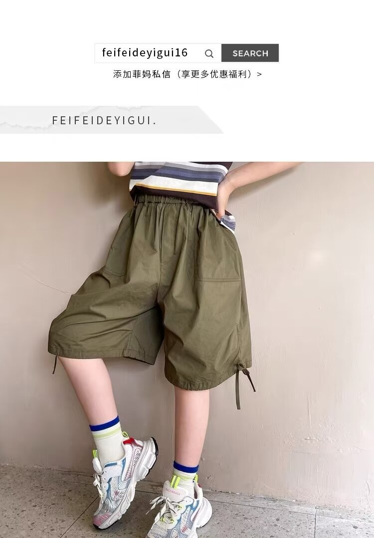 年童装夏季新款宽松休闲短裤男童纯色运动五分裤工装裤潮跨境