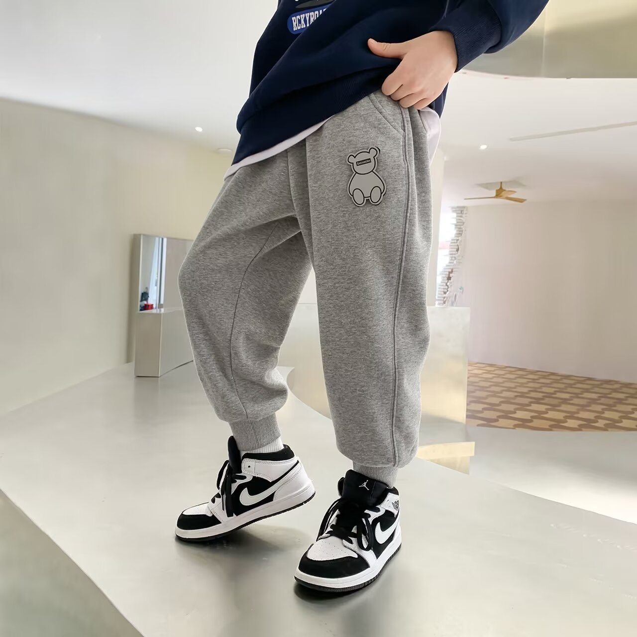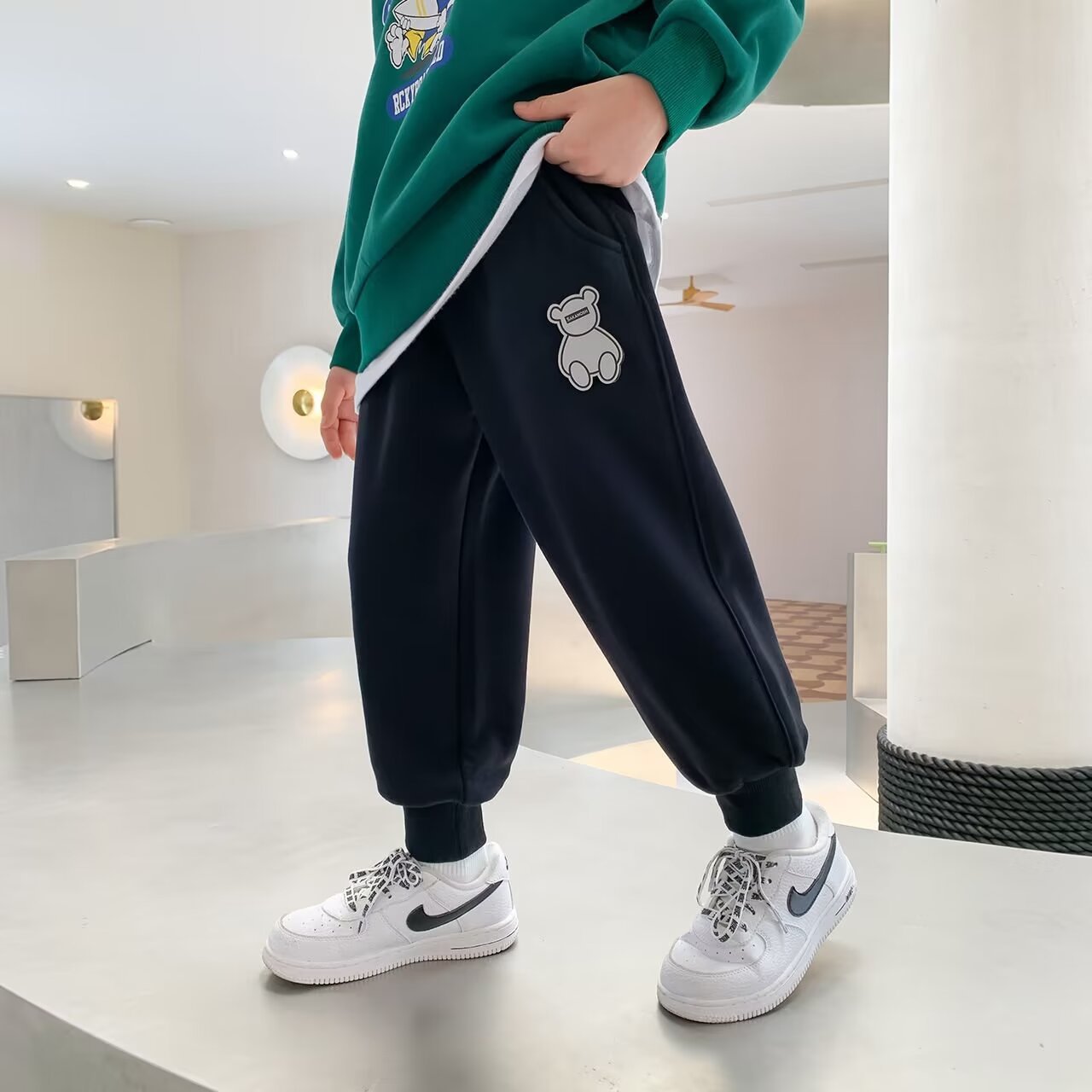 外贸男童春秋卫裤爆款童装小熊跑跳运动裤学生宽松束脚休闲裤