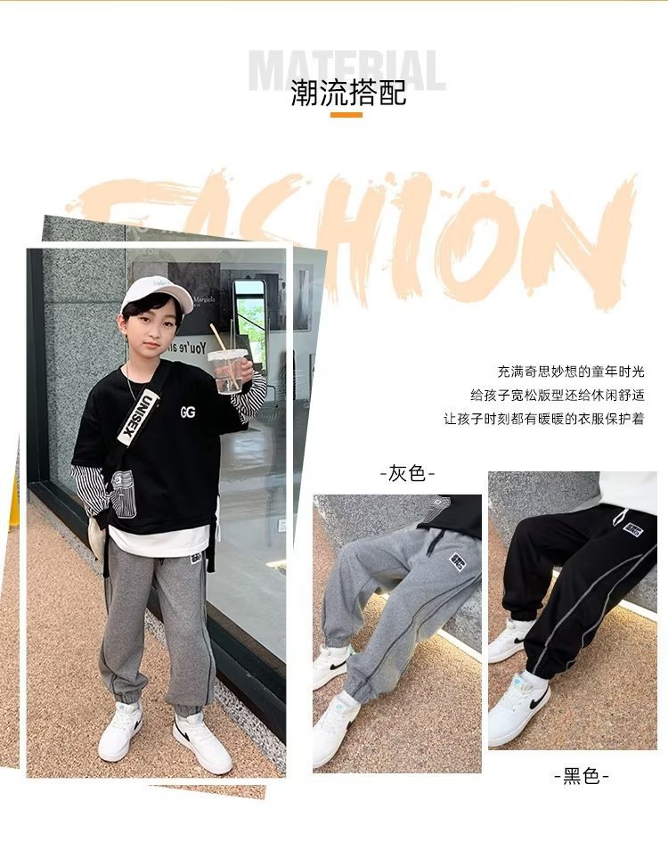男童运动裤春秋款儿童裤子新款大童洋气卫裤潮休闲裤潮独立站