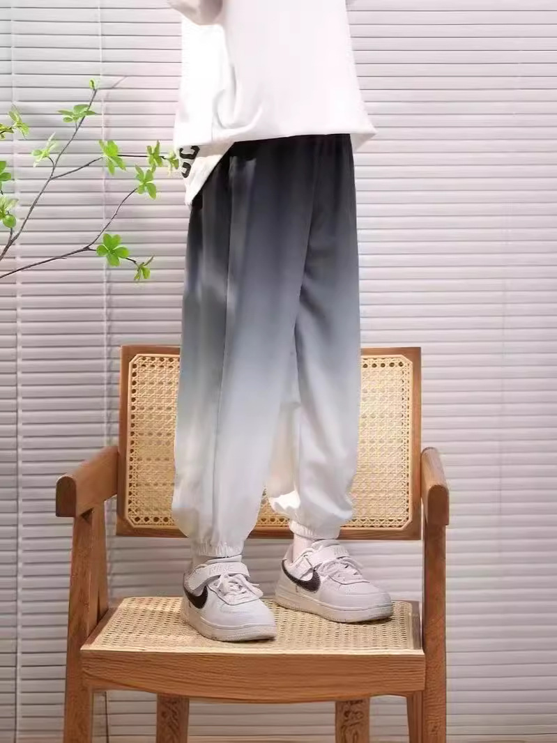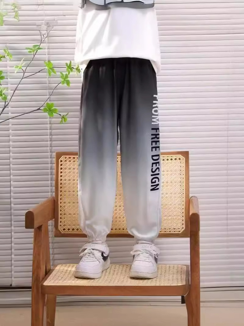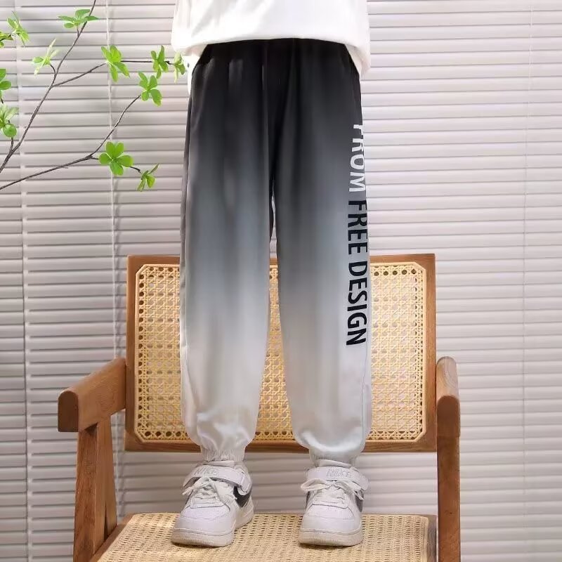 童装夏季冰丝长裤男童薄款渐变色休闲束脚空调裤防蚊运动裤子